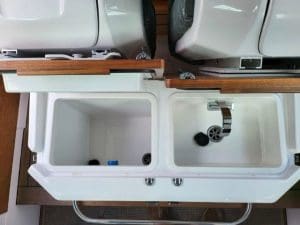 Sunbrella Plus Red Shower on aft deck Hull colour,