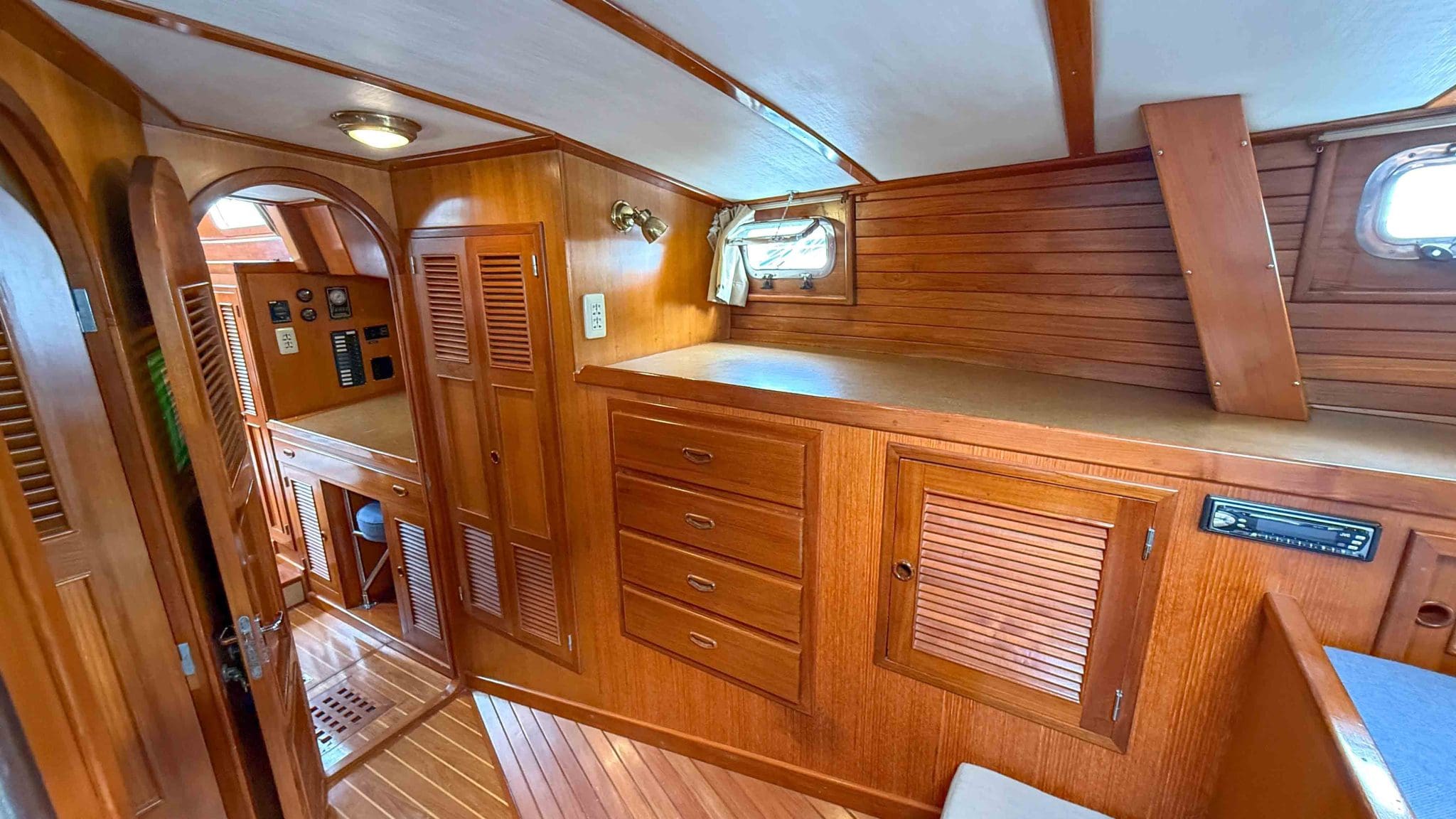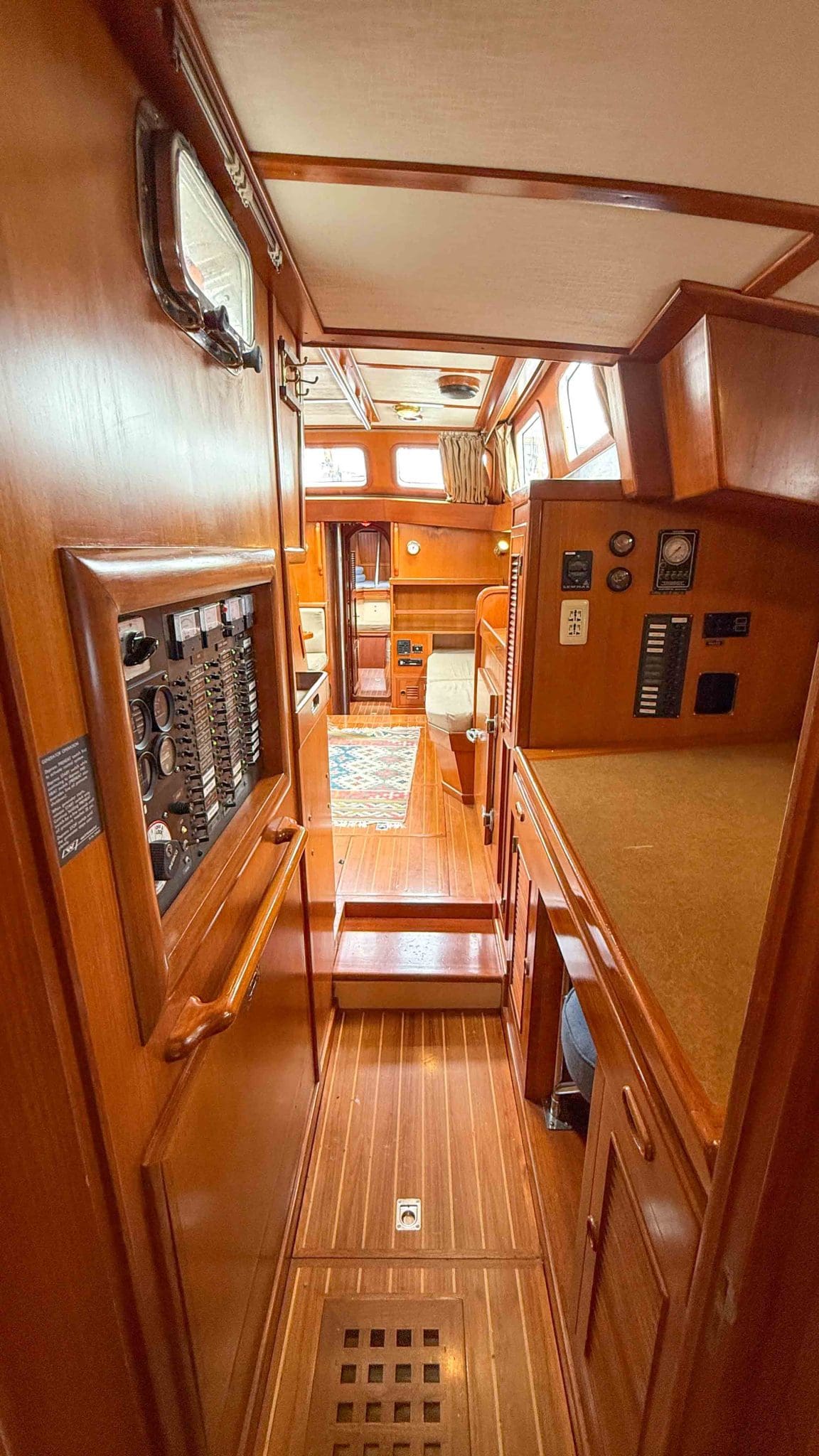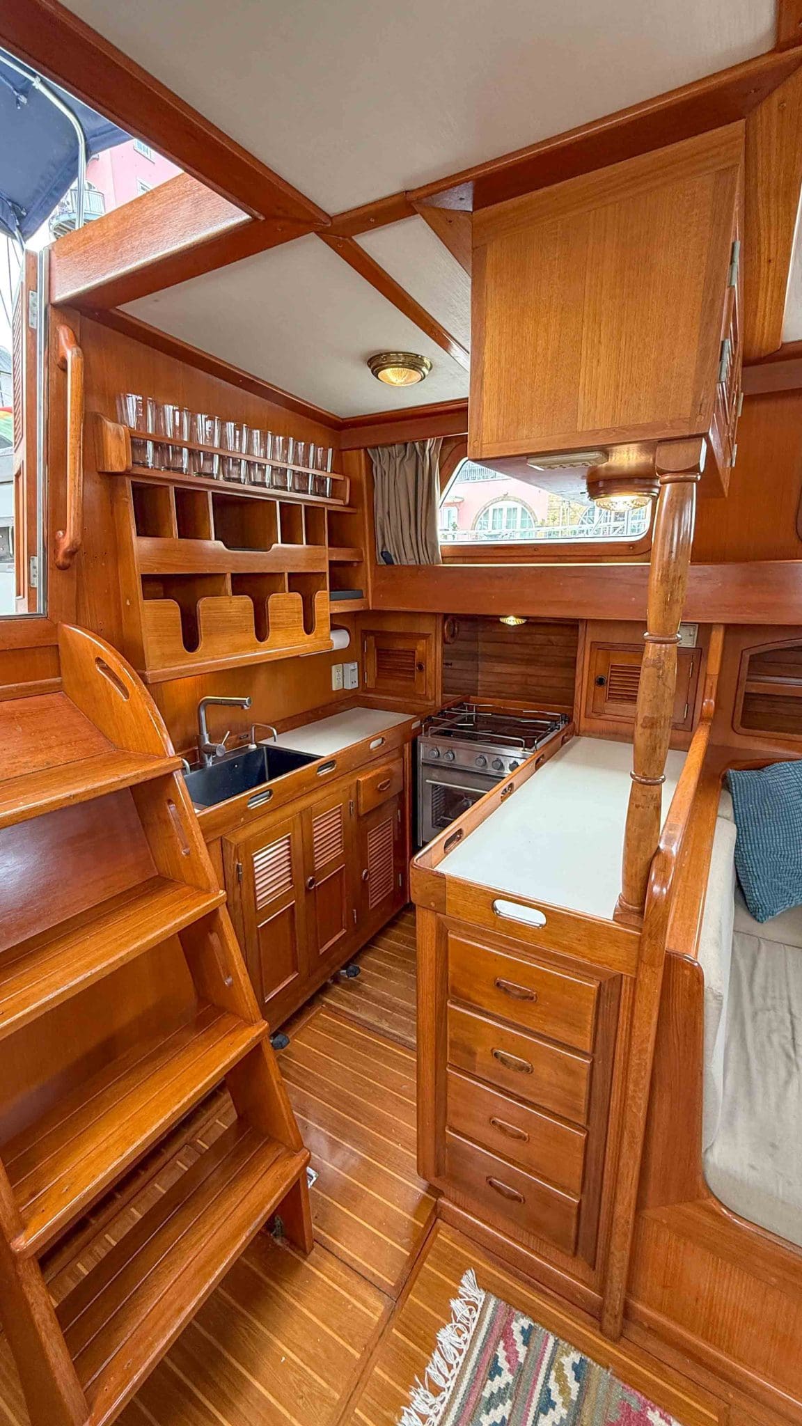 She is set up for true off grid living with a huge solar array couple with battery bank to allow her to be self-sufficient without a power hook up.