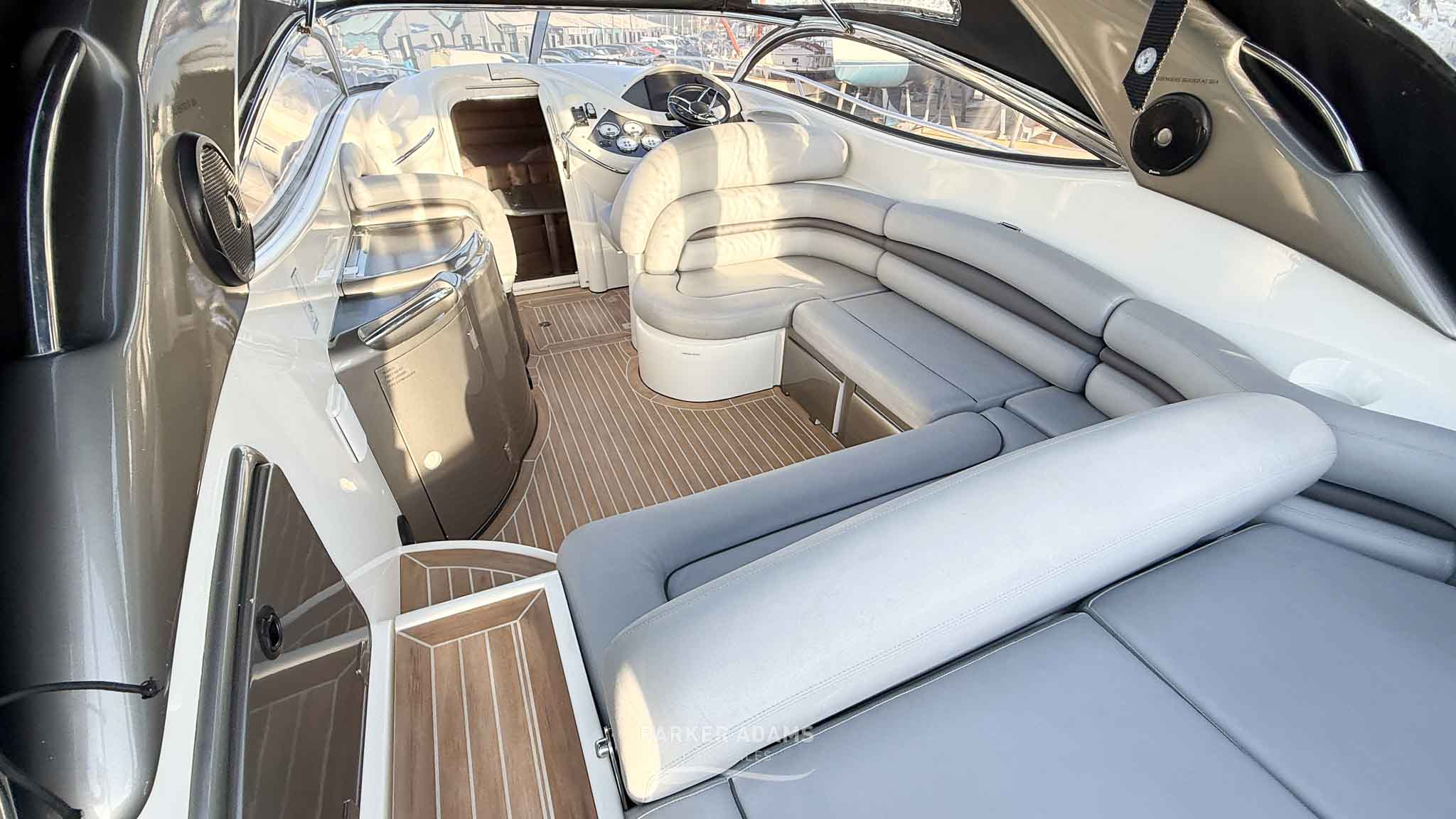 This exceptional Sunseeker Superhawk 34, “Time to Bond”, represents a rare opportunity to acquire a fully rebuilt and extensively modernised example of this iconic performance cruiser. Between 2018 and 2019, the vessel underwent a complete nose-to-tail refurbishment by a renowned West Country coachbuilder, followed by a major professional re-power and systems upgrade in 2023. The total investment into this boat exceeds £100,000, with no expense spared in bringing her up to modern standards while preserving the timeless Superhawk profile.