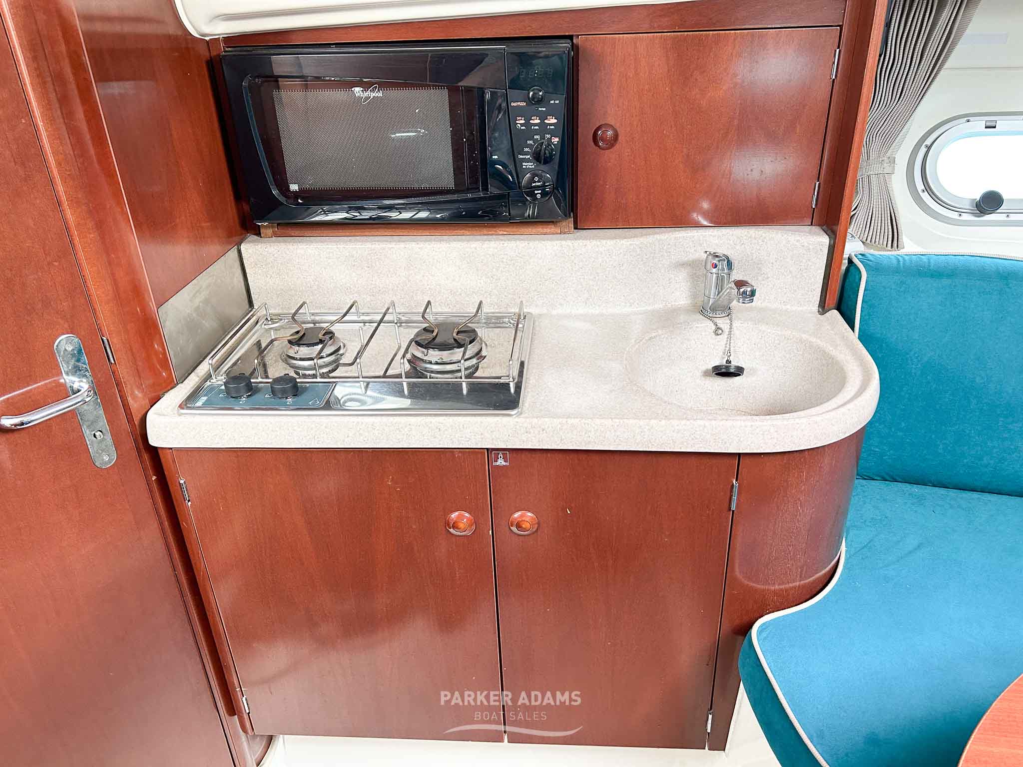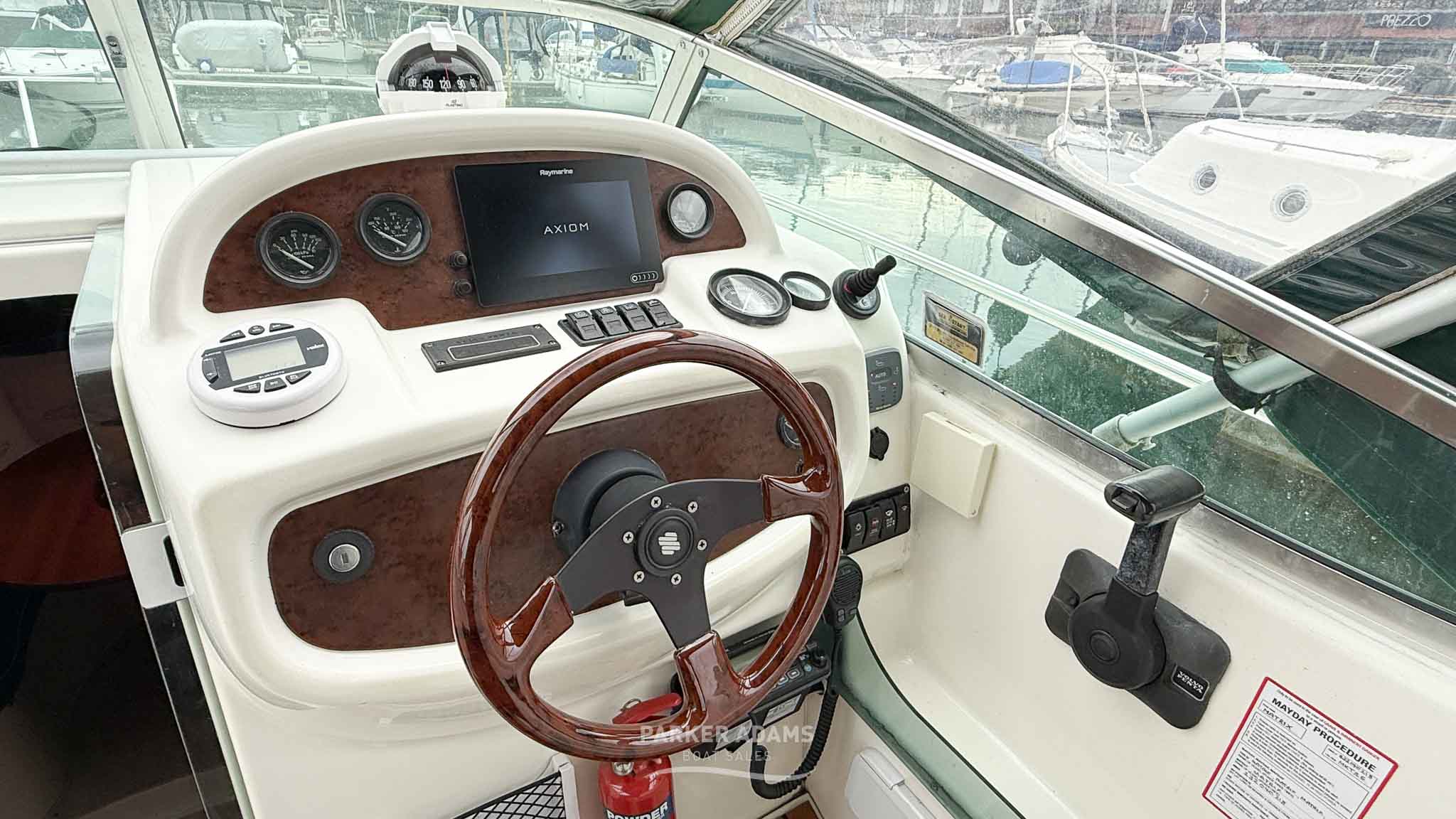 This 2000 example is powered by a Volvo Penta KAD43 diesel with DuoProp leg. Benefiting from significant upgrades and refits in recent years—including bow thruster, heating, rewiring, updated navigation electronics, and renewed upholstery—this Leader 805 represents an excellent turn-key package with all the desirable extras.