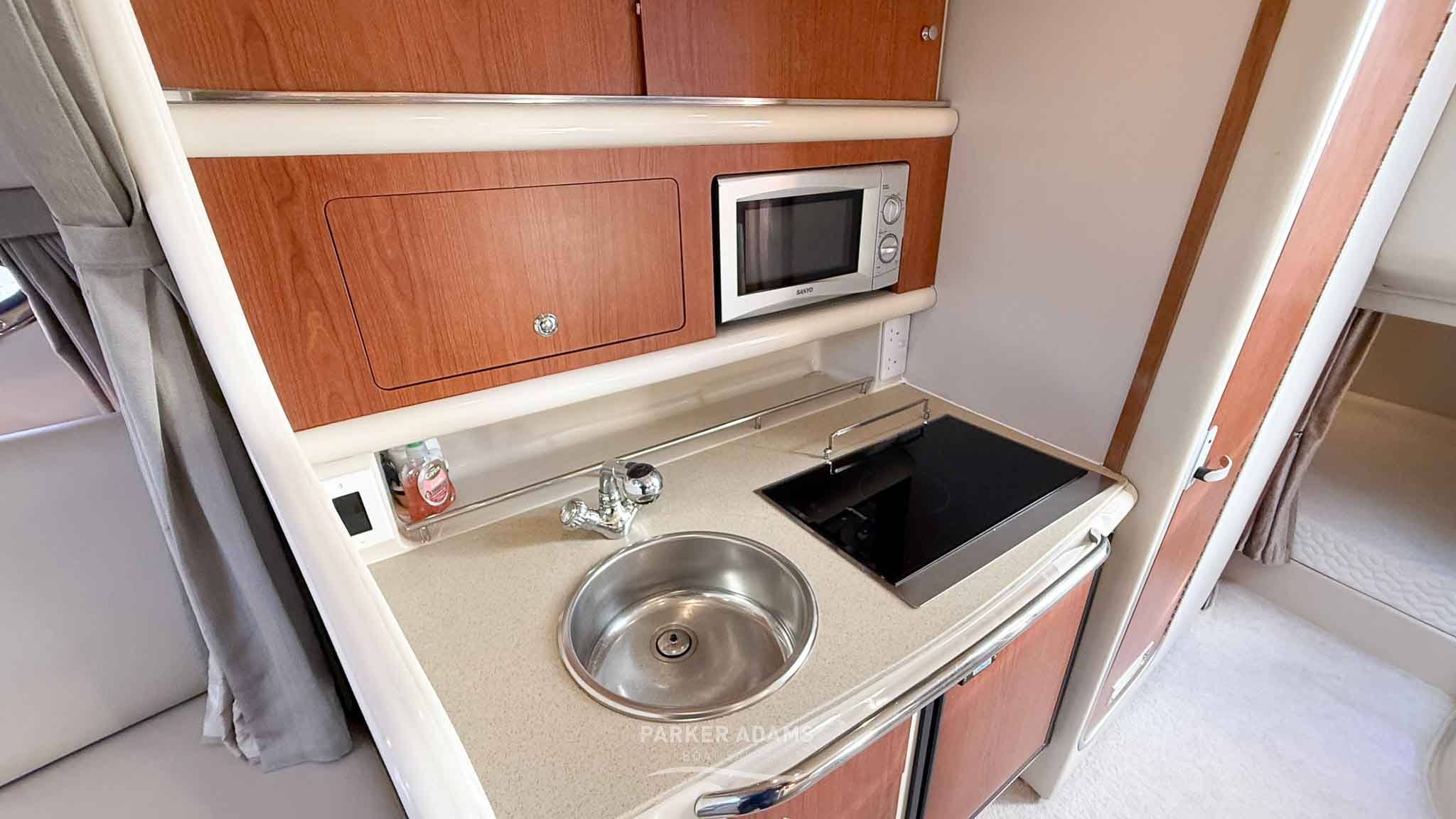 The cabin offers comfortable accommodation with a practical galley and good storage throughout.