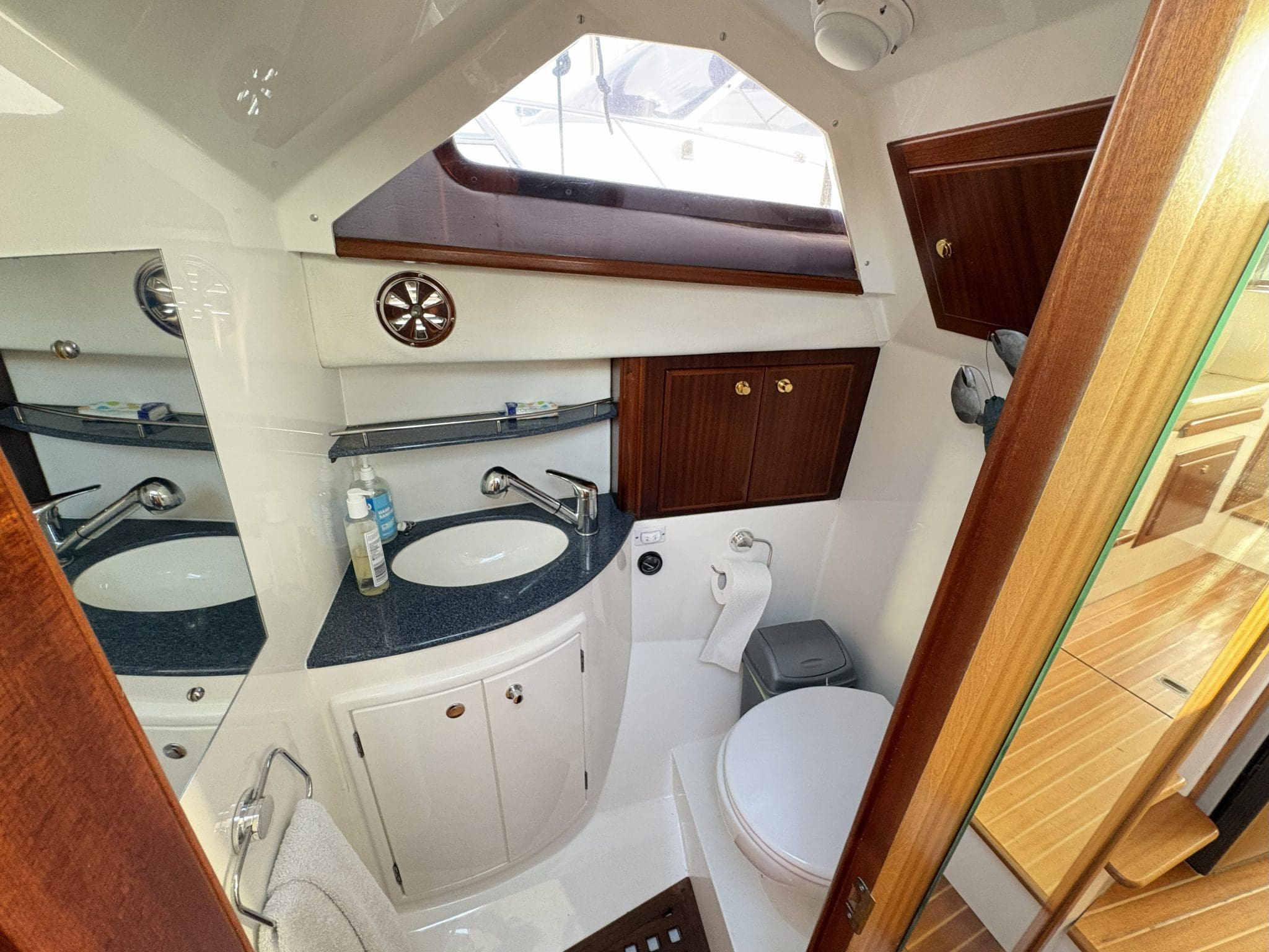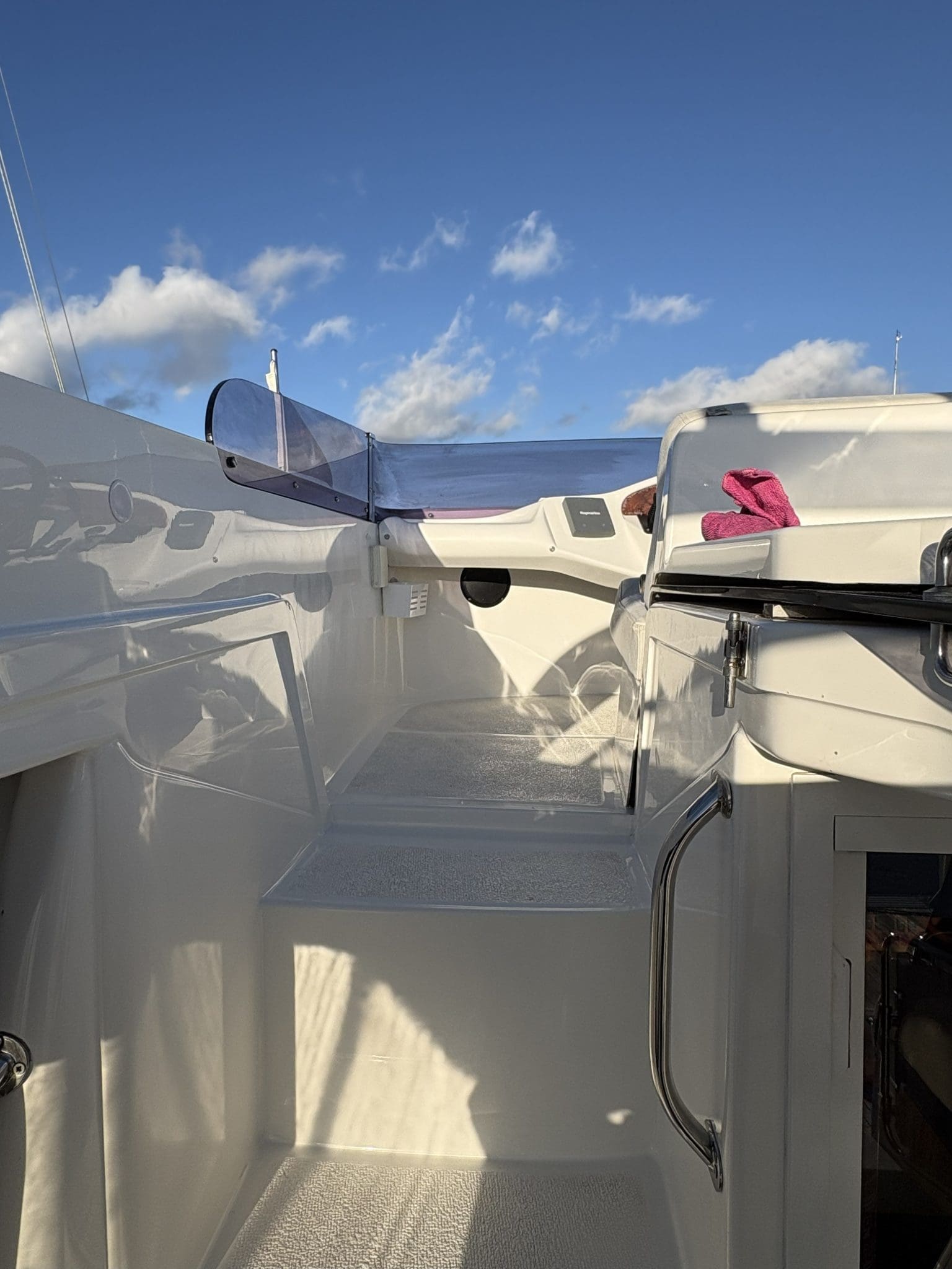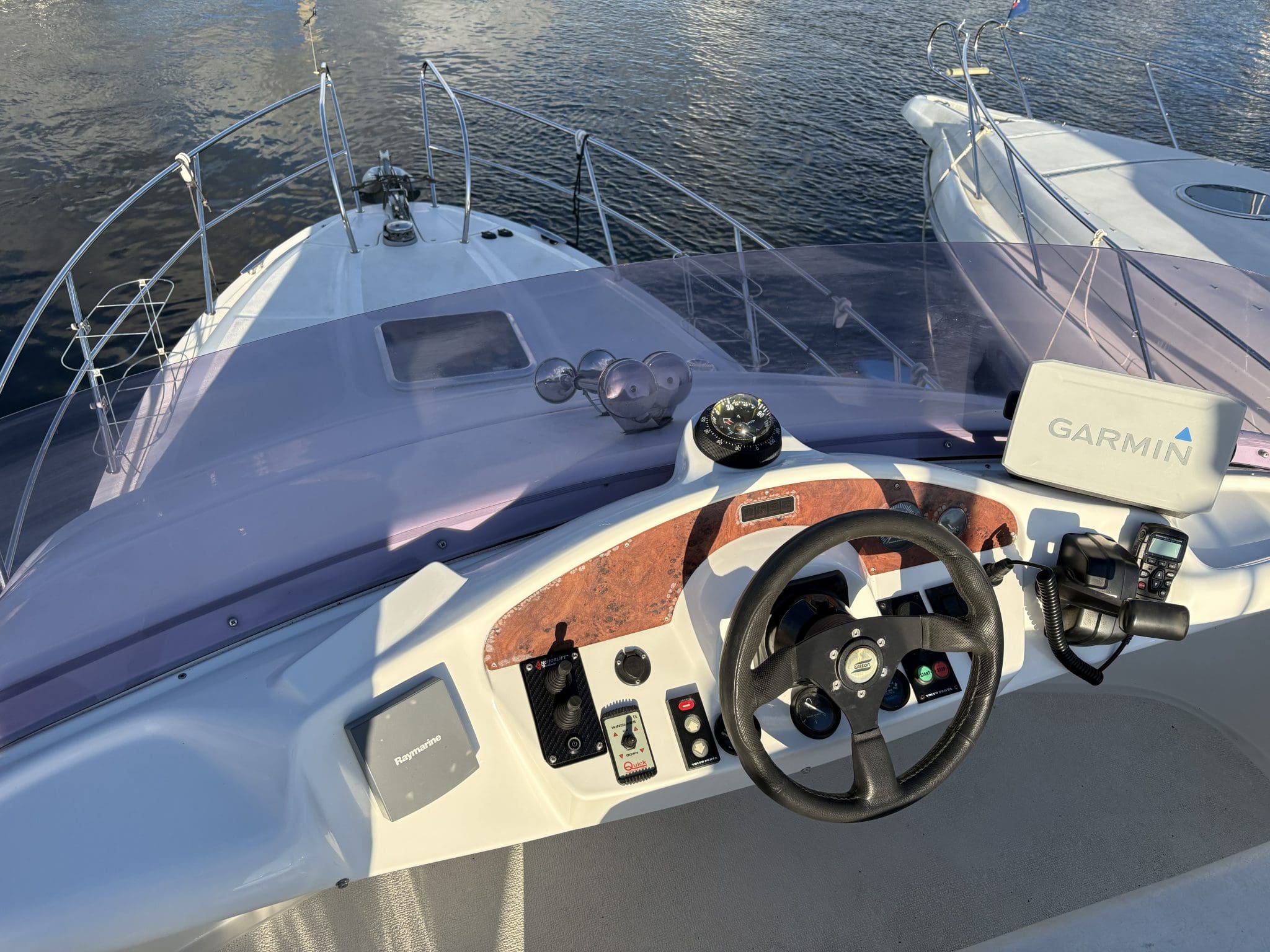 Powered by a Volvo Penta engine, which provides a smooth ride thanks to its deep-vee hull, and includes dual helms with modern navigation equipment.