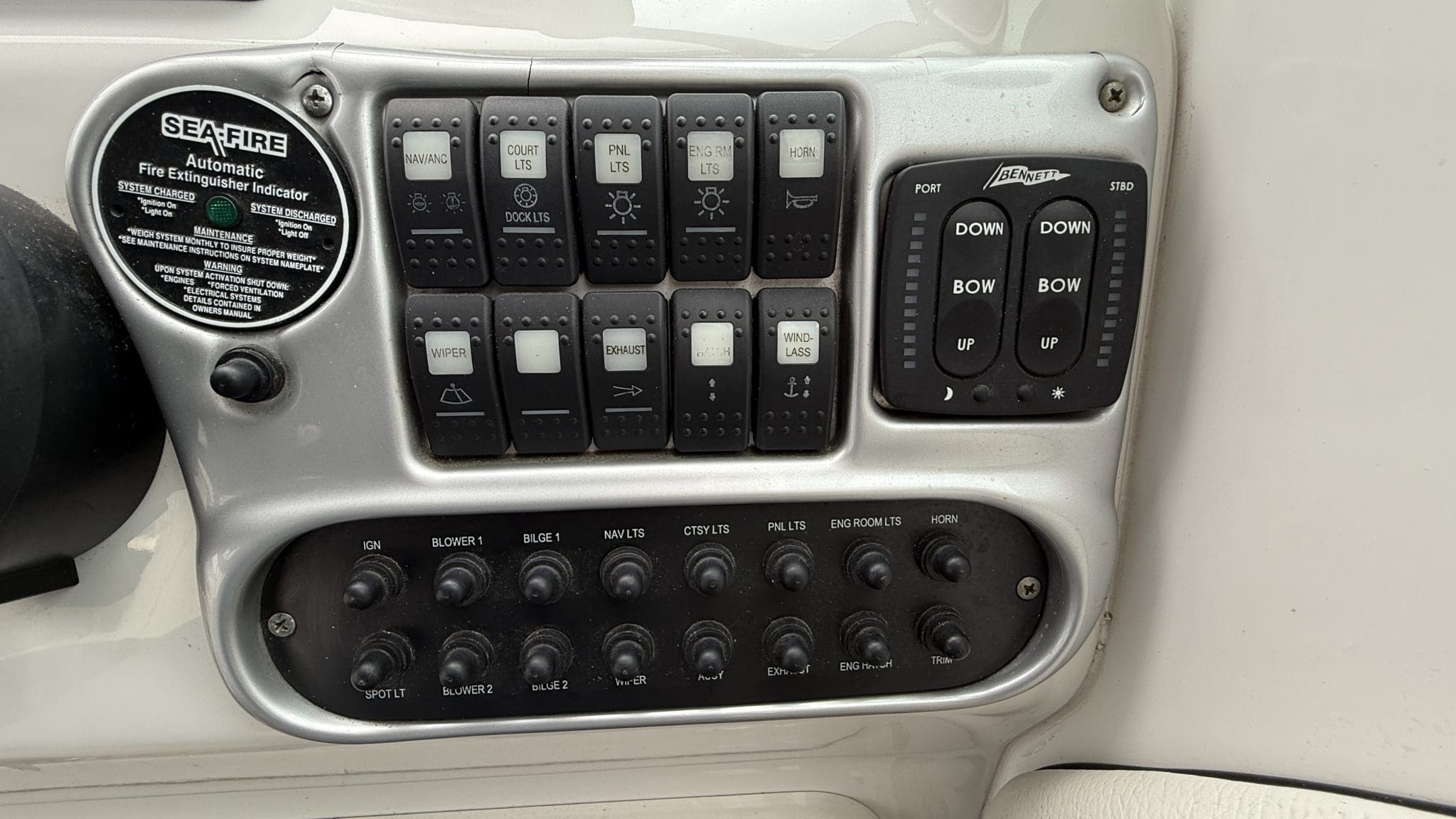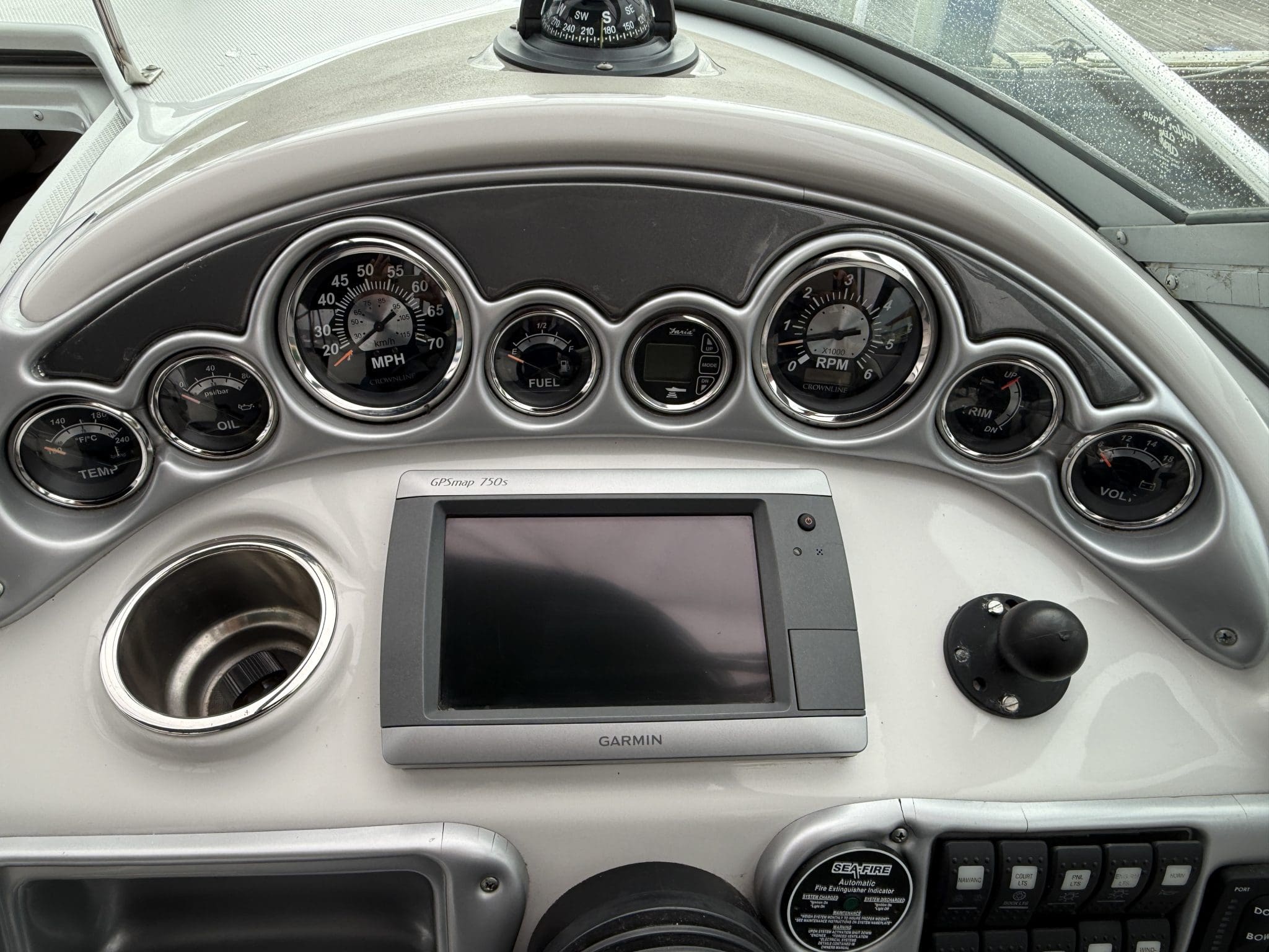 Full instrumentation at helm position: Tachometer with hour meter/Speed/Temp/Oil pressure/Volts/Fuel/Trim