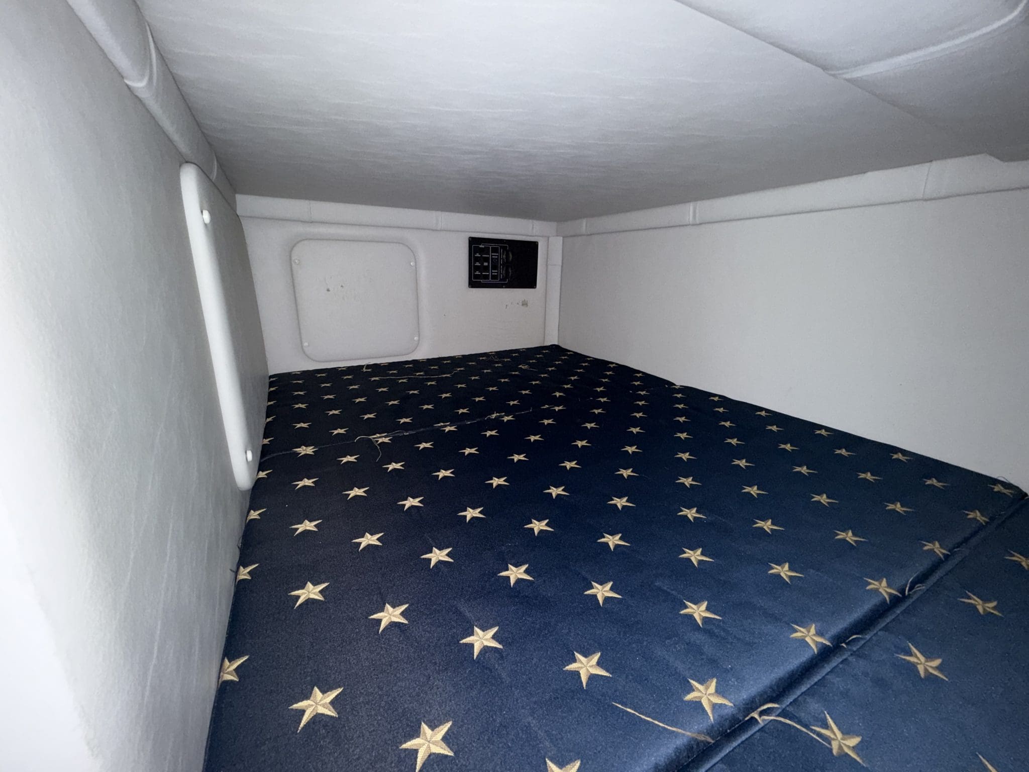 Aft berth area: a generous sized double berth positioned across the full width of the boat.