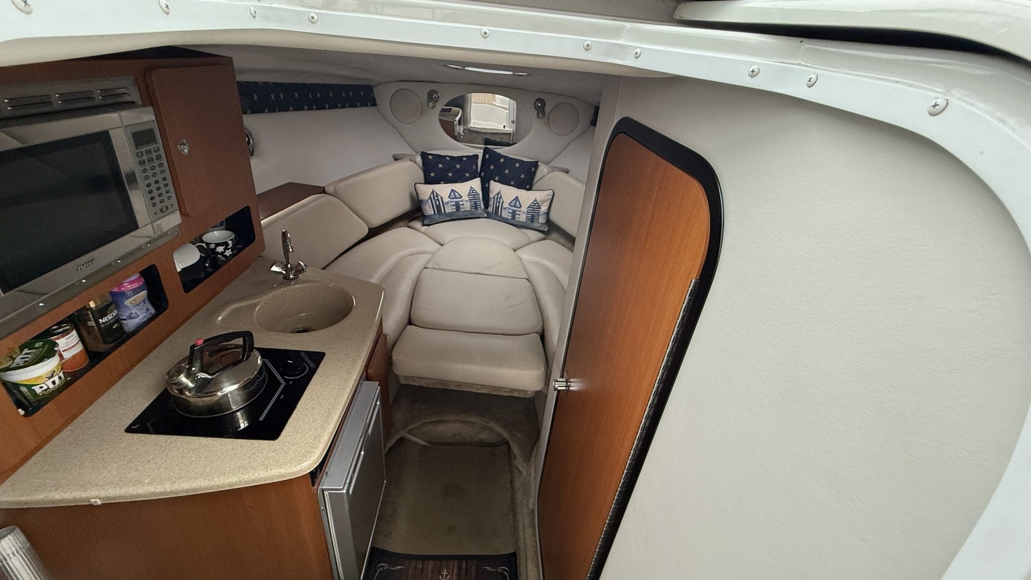 As a family of 4 we have had so much fun on this boat during our ownership. She is small enough and powerful enough to tow inflatable toys yet big enough and comfortable enough for 4 people to weekend away on her either at anchor or in marinas. Her seaworthiness over long distances is excellent and she has proven to be an excellent coastal cruiser as she handles swell and chop with ease.