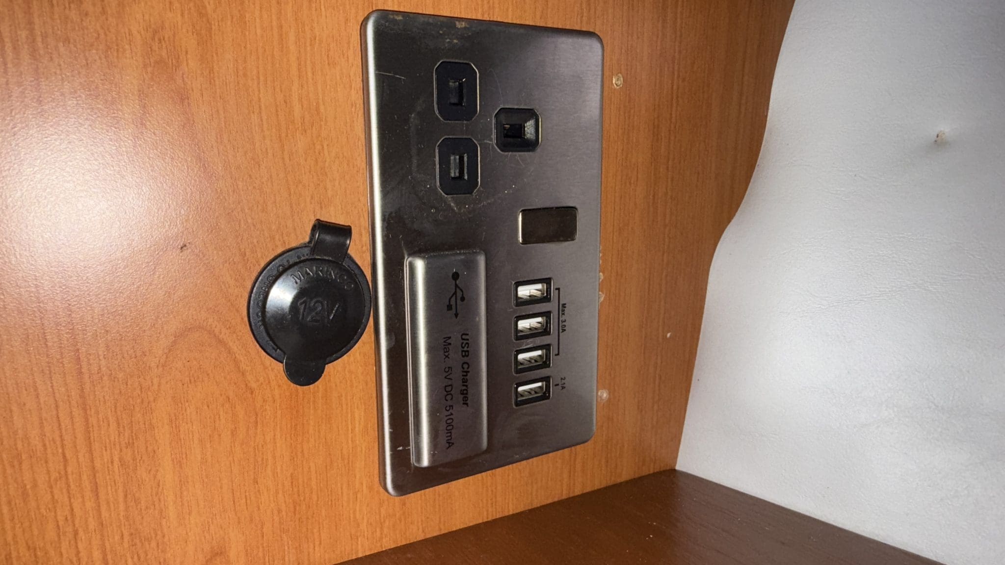 Located to port you will find a wet bar with a moulded basin & fresh water supply. Black flecked worktop surround and hand rail. Fitted storage underneath for an Igloo cool box.