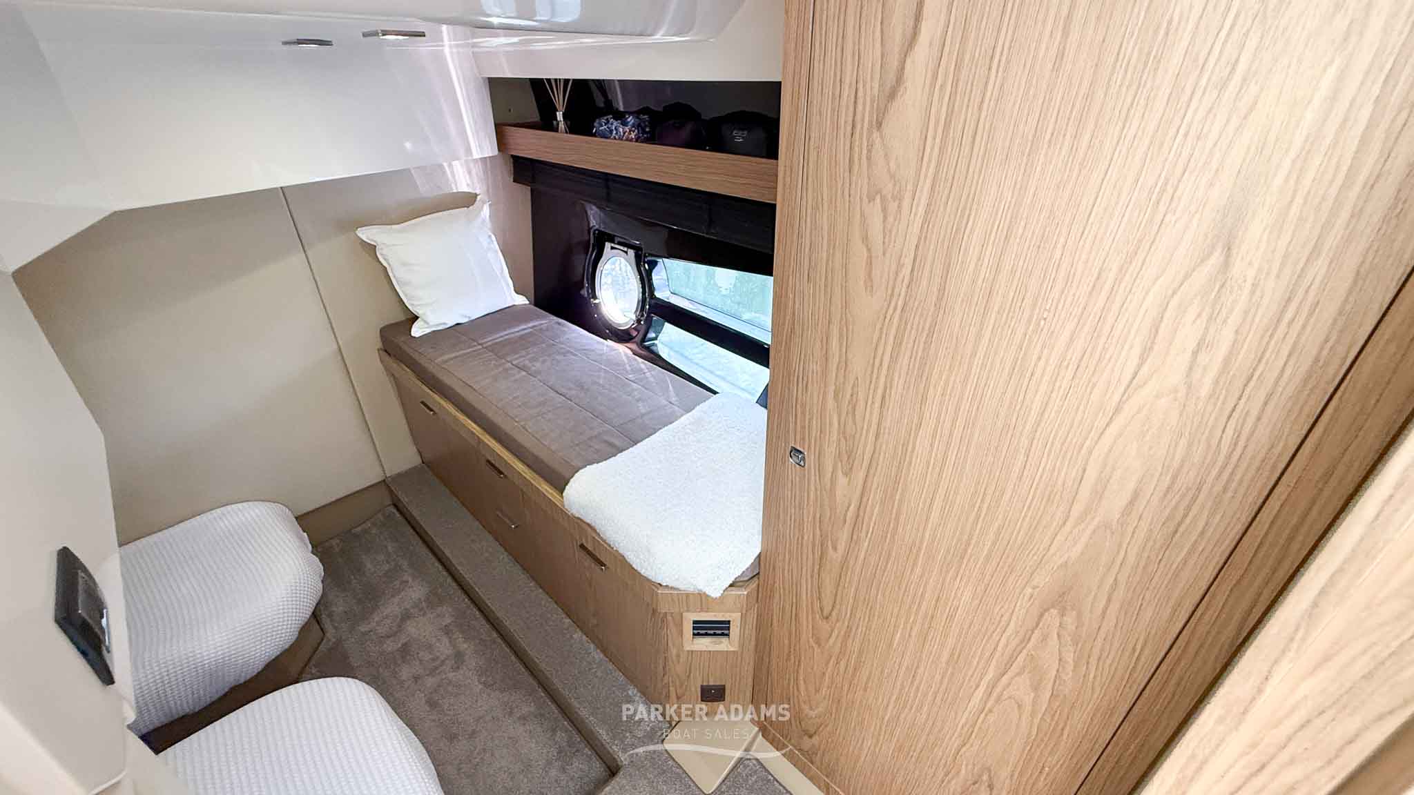 The C38 is well known for its spacious and contemporary layout, featuring a hardtop with electric sunroof, expansive cockpit with outdoor galley, and a luxurious two-cabin, one-head interior. It’s ideal for couples, families, or entertaining guests on board.