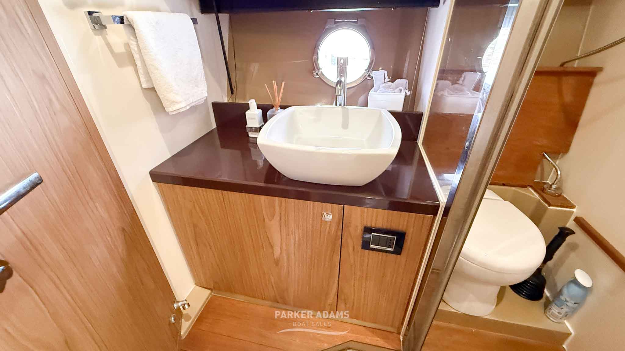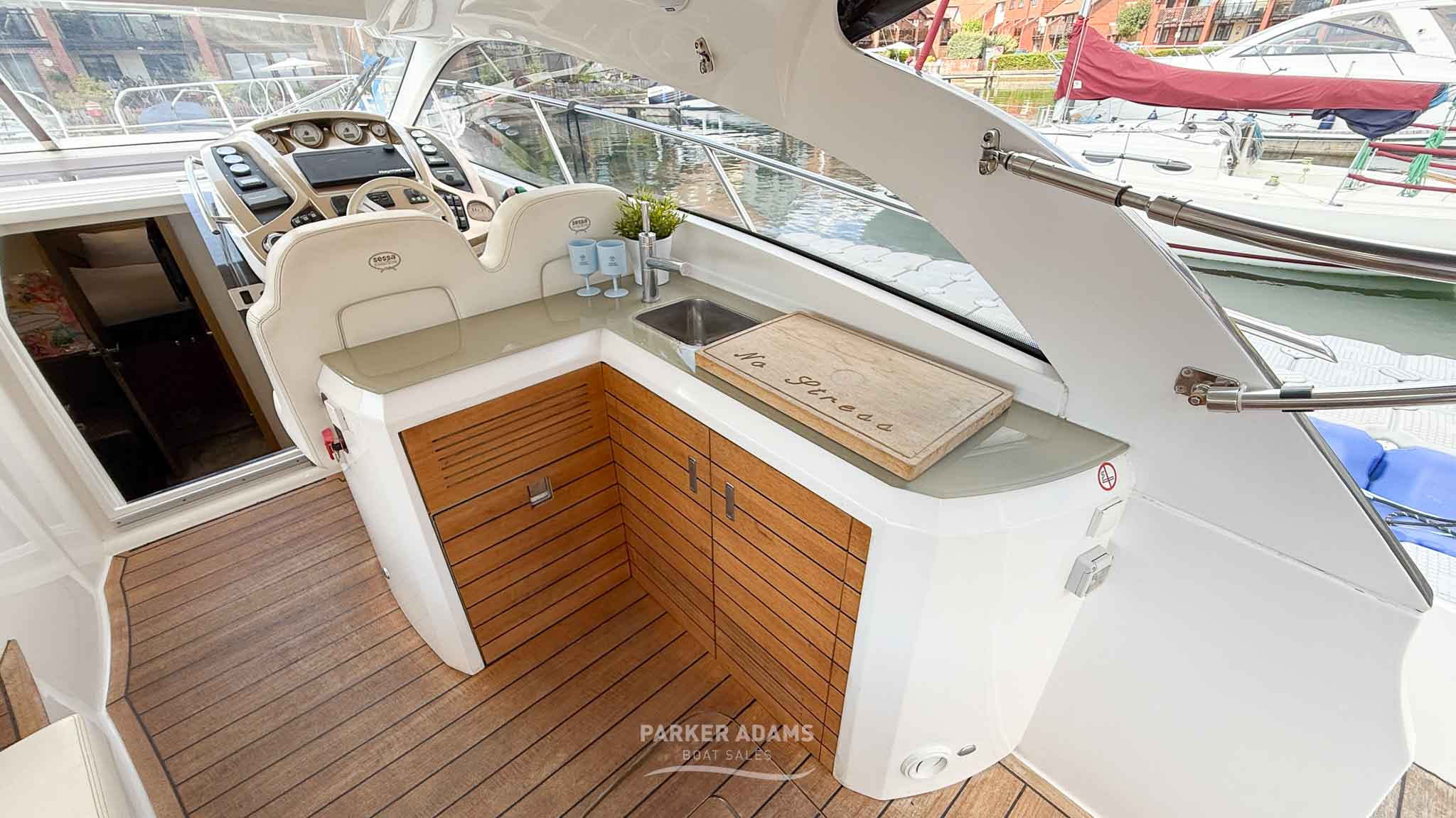 • Spacious Cockpit Layout – Convertible seating, teak decking, wet bar with grill/sink/fridge