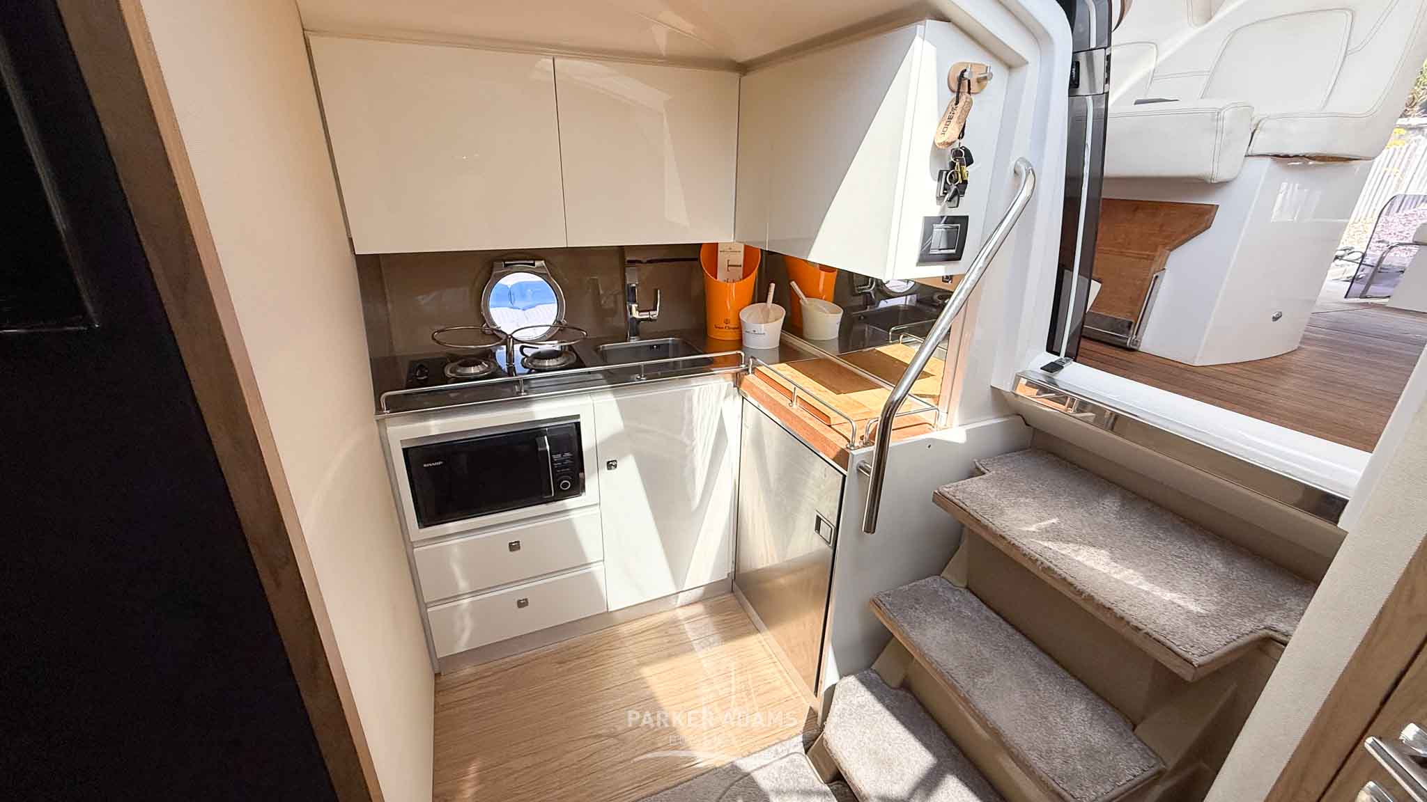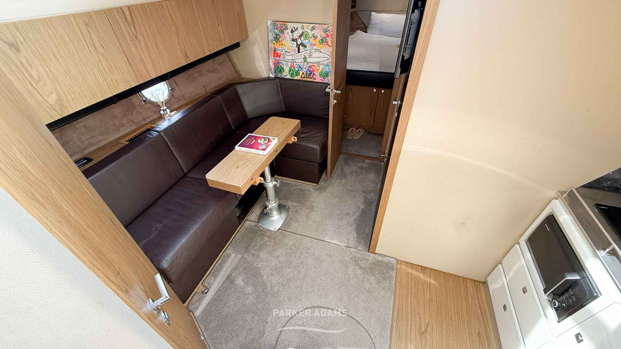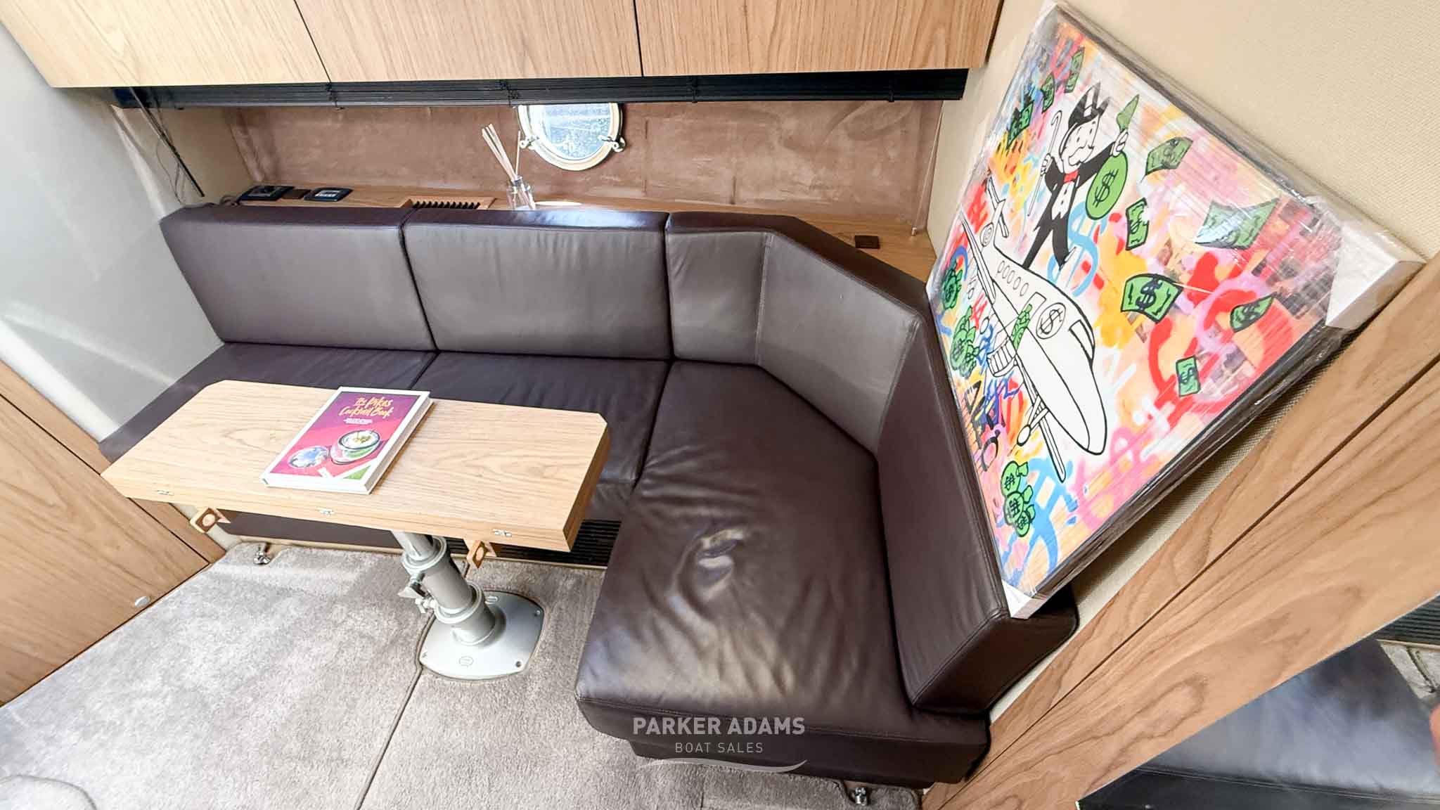 Sessa’s stylish and innovative approach is evident throughout—from the panoramic hull windows and rich interior finishes to the practical galley and large bow sunpad.