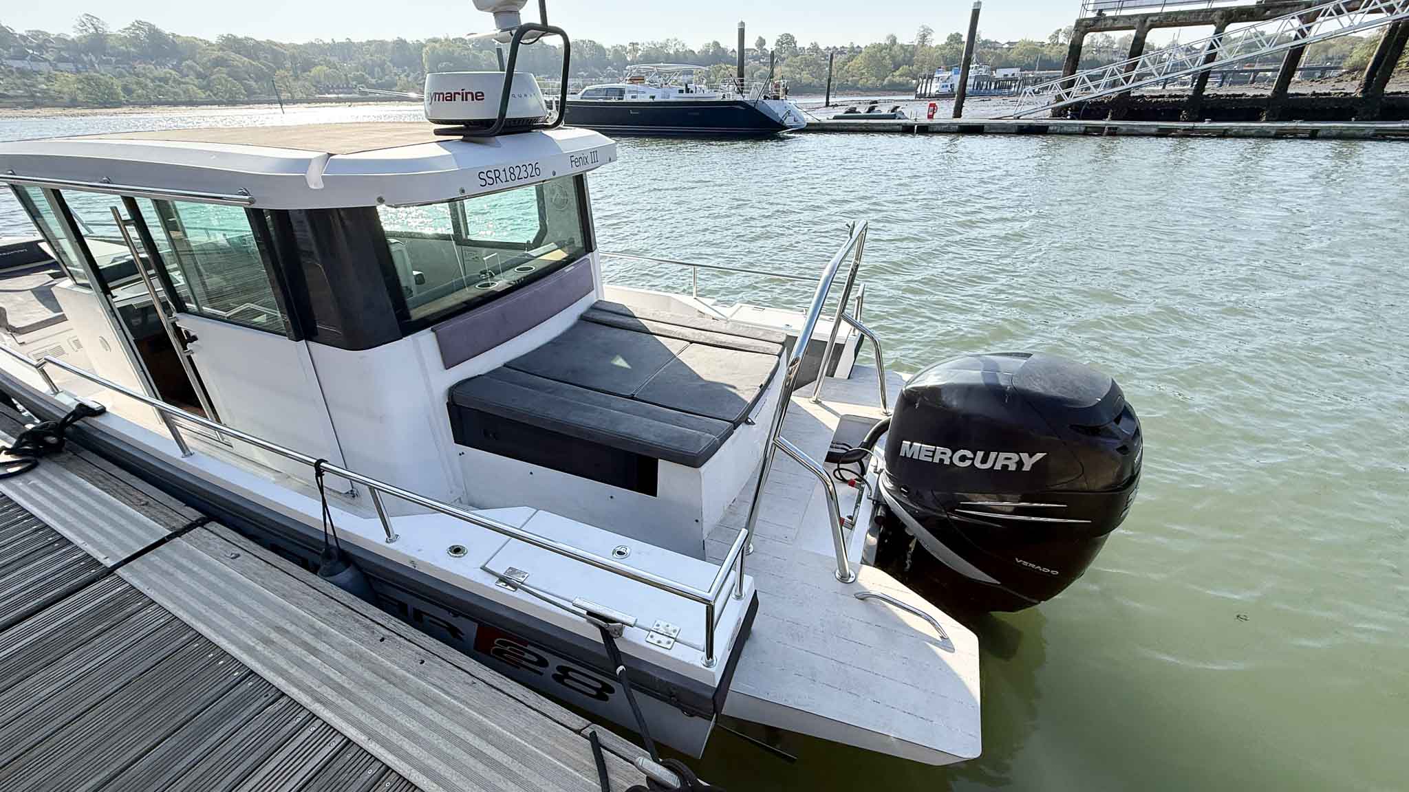 A superb example of the ever-popular Axopar 28 Cabin Mk I, combining striking Scandinavian design with exceptional performance and versatility. Powered by a Mercury Verado 300hp outboard with just 462 hours, this vessel delivers exhilarating handling alongside practical, all-weather usability.