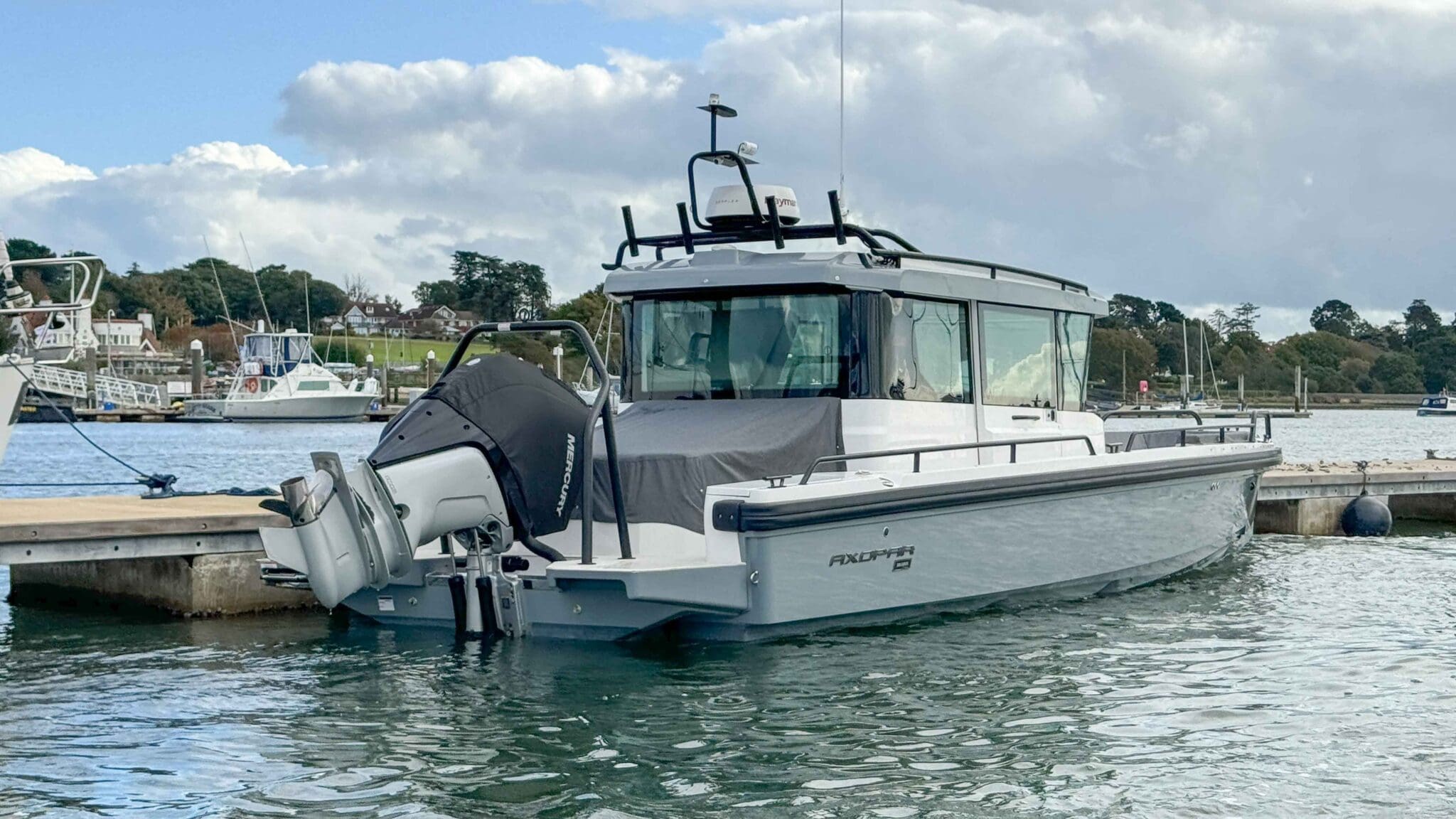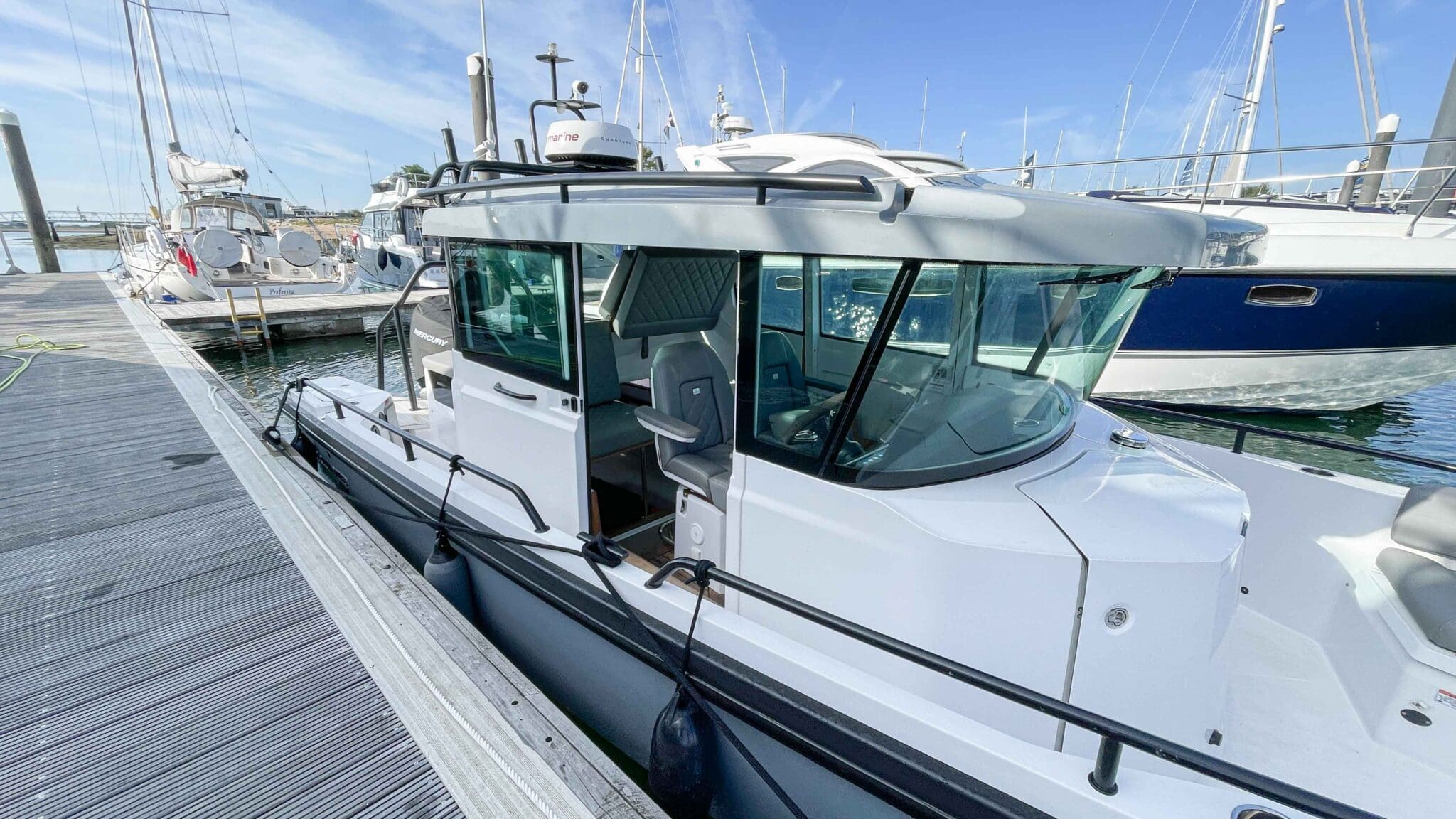 We are delighted to present this stunning 2020 Axopar 28 Cabin Brabus Line, finished in factory grey and specified with an exceptional inventory. Immaculately maintained from new and available immediately on the Hamble, she represents a rare opportunity to acquire a highly sought-after model with premium upgrades throughout including a completely new Raymarine Navigation set up in 2023, dual screens, dual cameras, AIS, deckl lights, underwater lights and so much more, this is one of the highest specced Axopar 28’s on the water