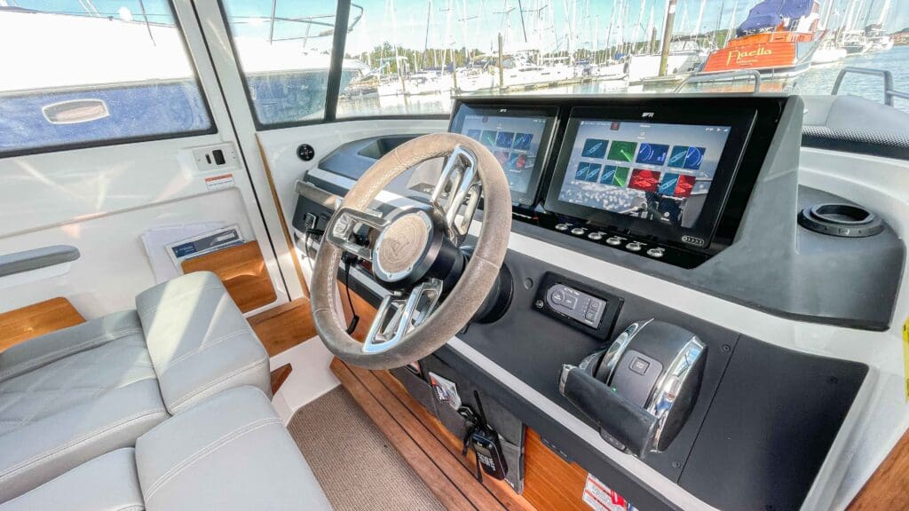 This Axopar 28 Cabin Brabus Line offers the perfect combination of performance, comfort, and cutting-edge design. Equipped with extensive factory and aftermarket enhancements, she is ideally suited for year-round adventures, coastal cruising, and fast, efficient passages. The Brabus Line styling delivers a distinctive, sporty aesthetic complemented by an impressive suite of technology and luxury features.