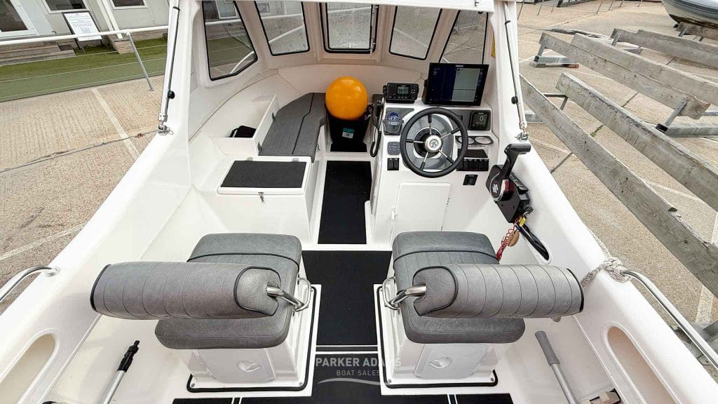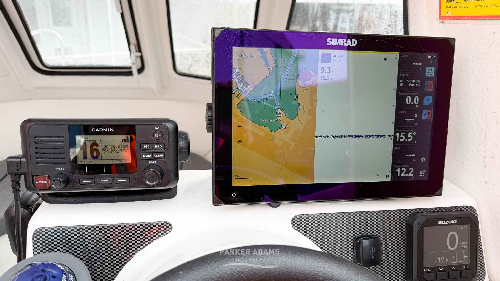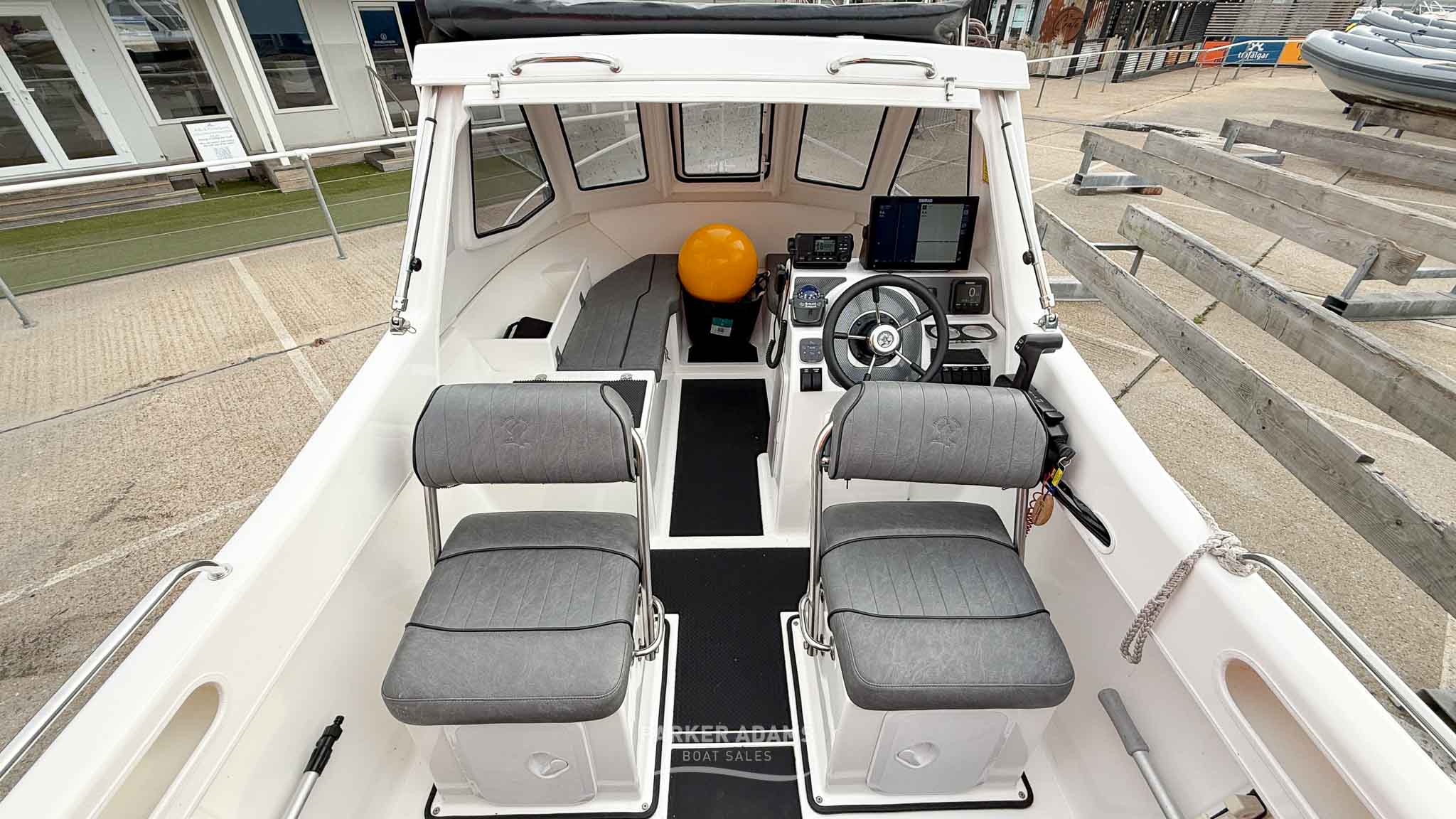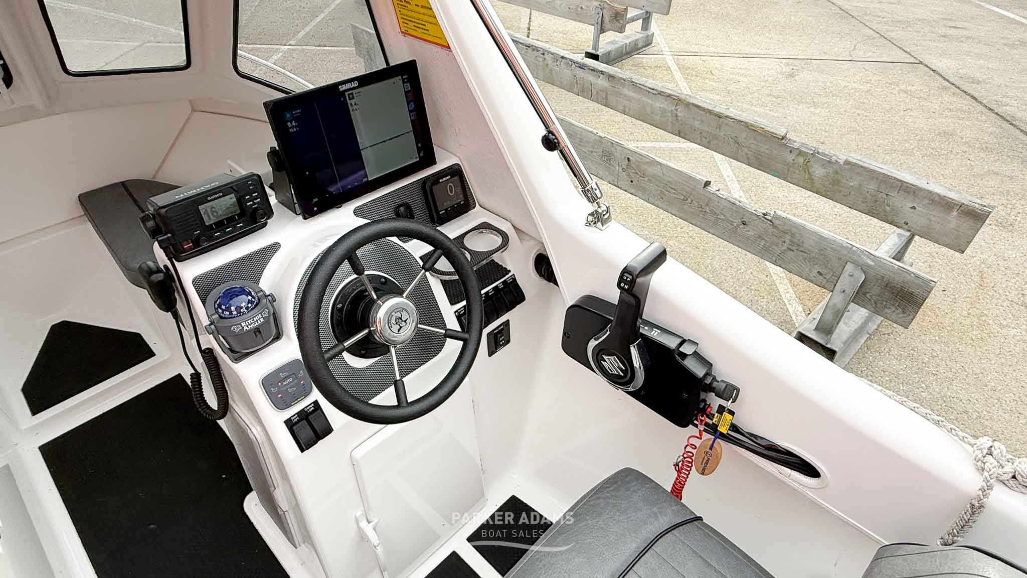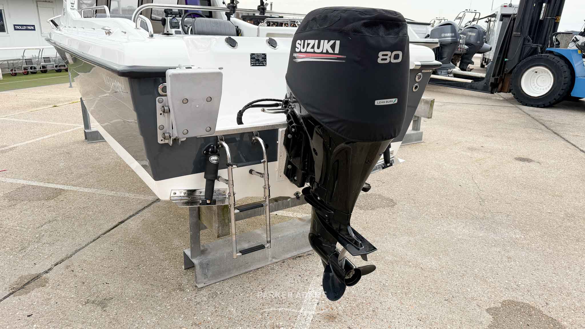 This 2020 example is fitted with a Suzuki DF80hp four-stroke outboard, renowned for reliability and fuel efficiency, and benefits from a wealth of factory features and high-quality upgrades. With her comprehensive electronics suite, twin battery system, trim tabs, fishing extras, and comfort refinements, she is presented as a fully equipped turn-key package.