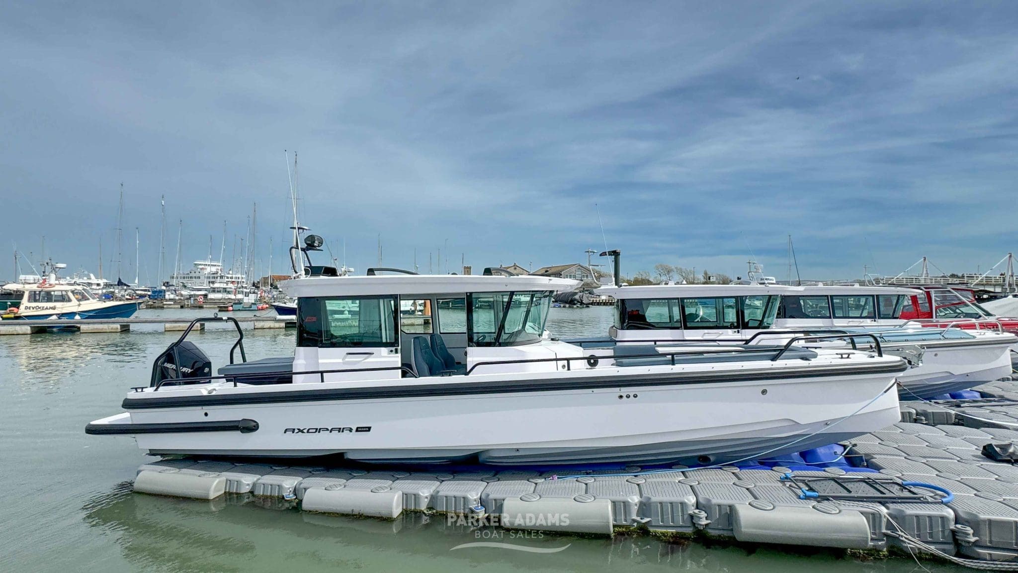 Currently lying at Hamble Point Marina, this striking example is presented in superb condition, benefitting from very low hours and minimal use. The Axopar 28 Cabin is one of the most admired all-weather sports boats in its class, and this Brabus Line model elevates the experience further with premium detailing, upgraded equipment, and a host of desirable extras.