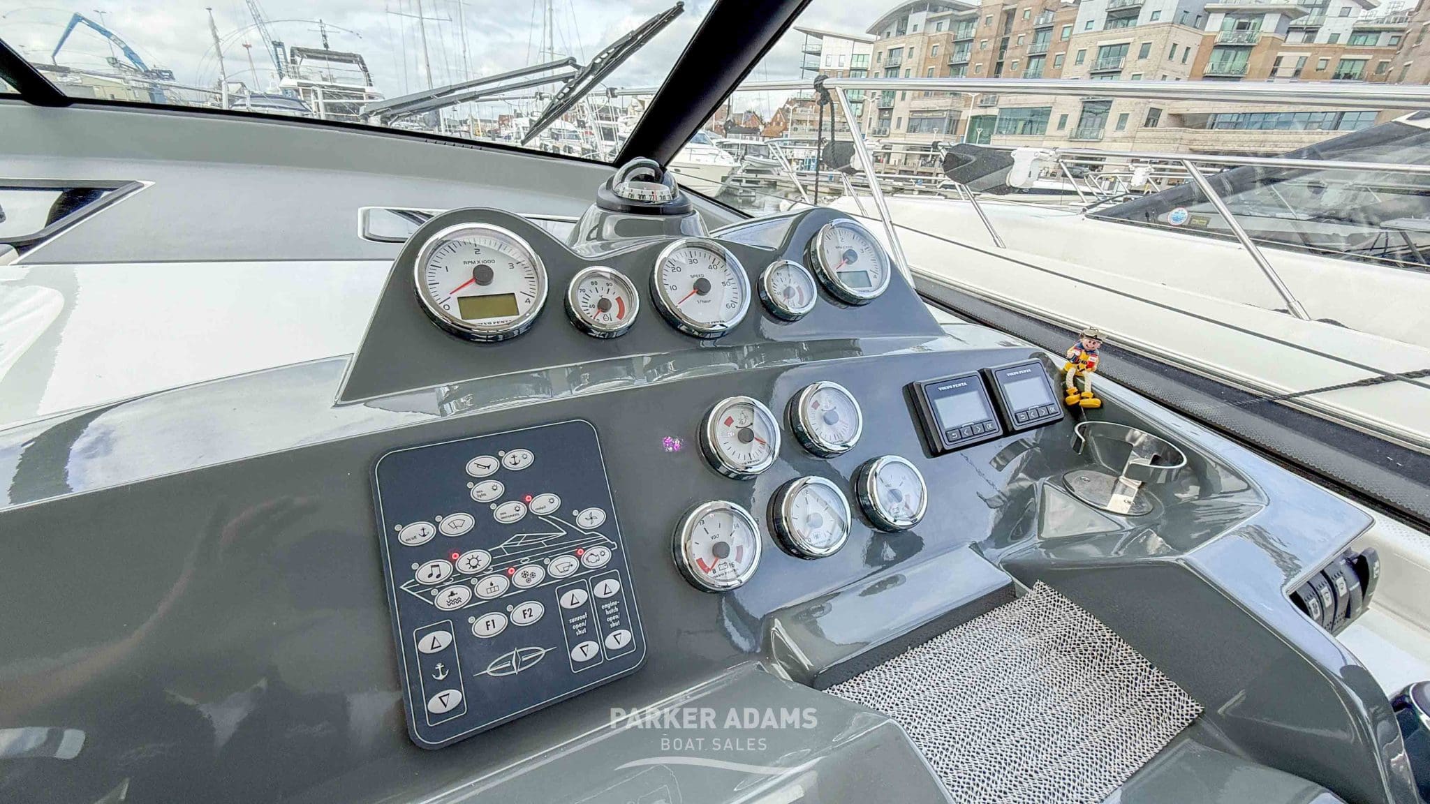 - Comprehensive instrumentation: RPM, oil pressure, speed, trim, battery, and fuel gauges