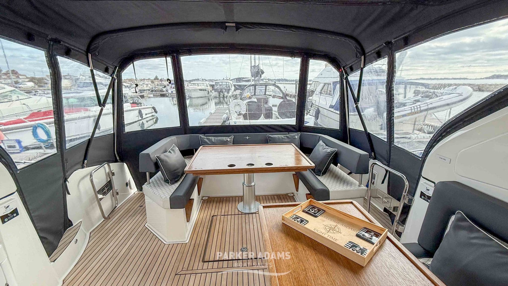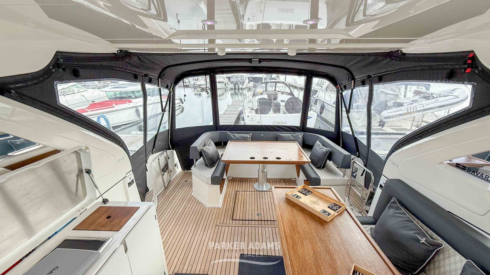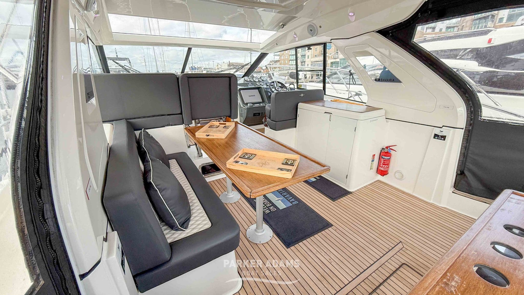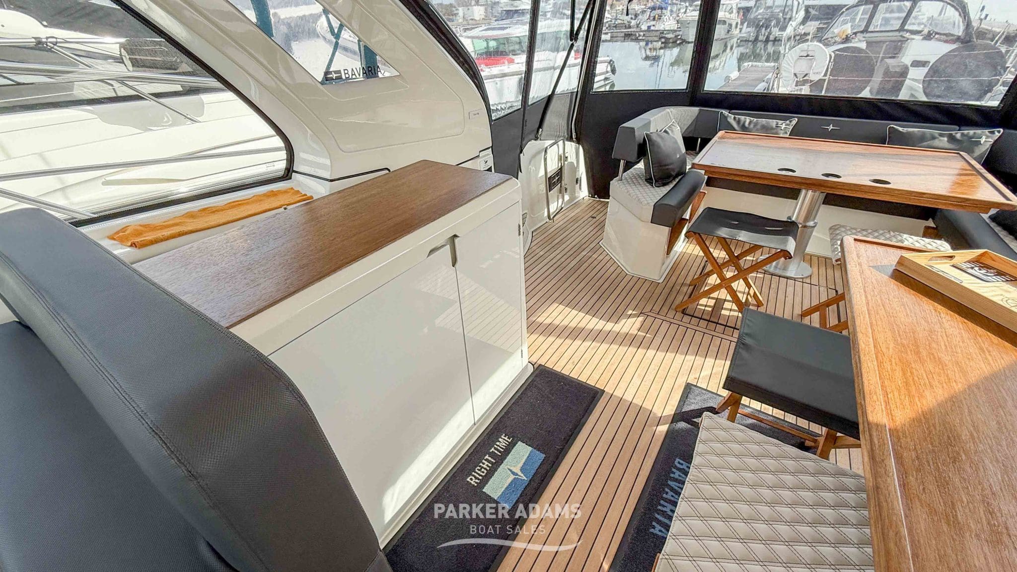 - Port side bench seat with additional dining table