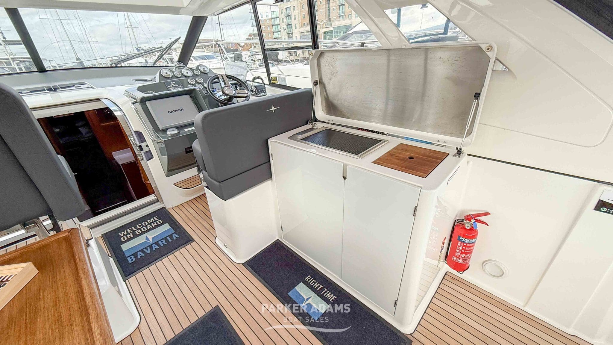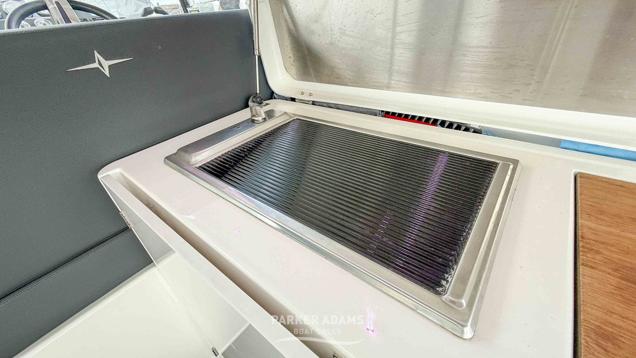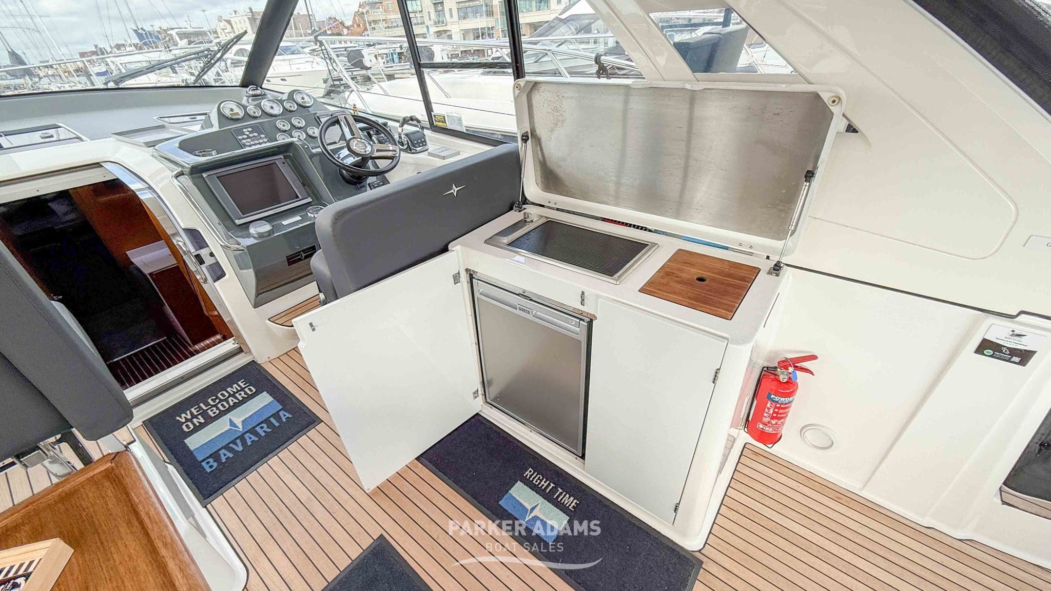 - Starboard wet bar featuring fridge, freshwater sink, and grill