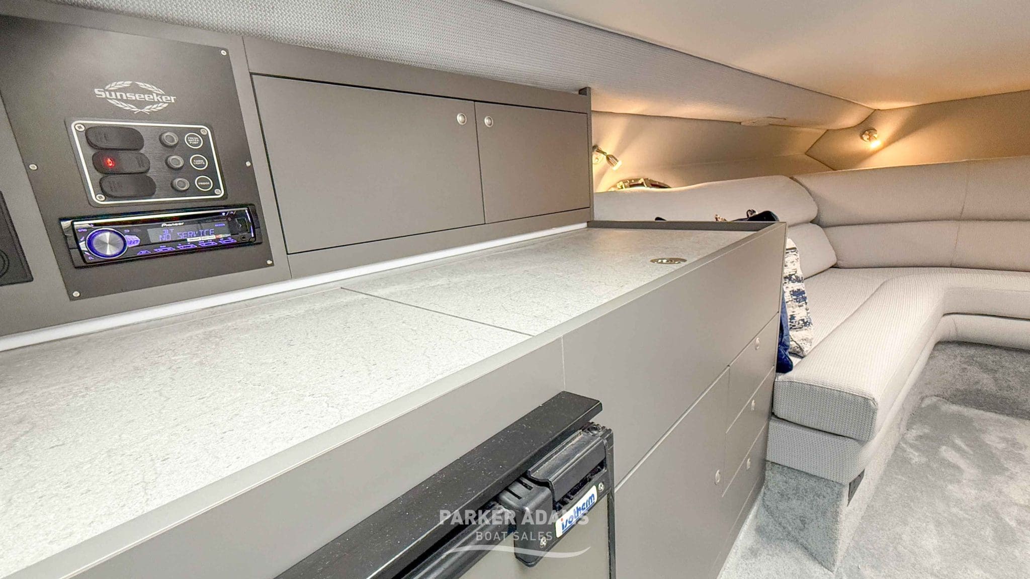 With plenty of background turbo/induction noises but still maintaining the smoothness on offer of the V6 common rail engines, the boat is an exciting mix of modern performance, efficiency and retro-nostalgic Sunseeker handling and ride experience.