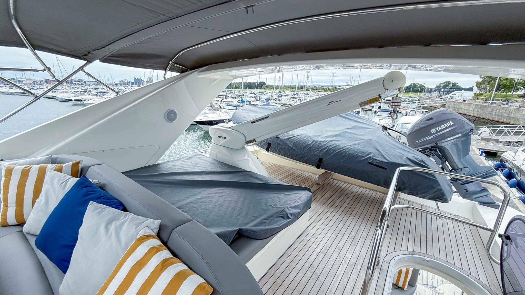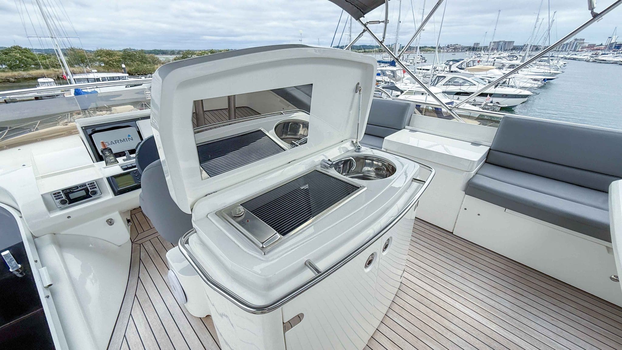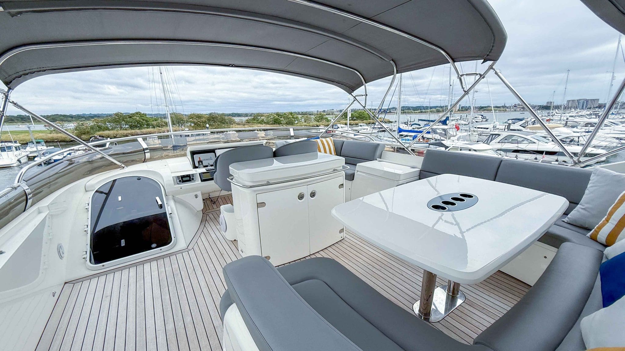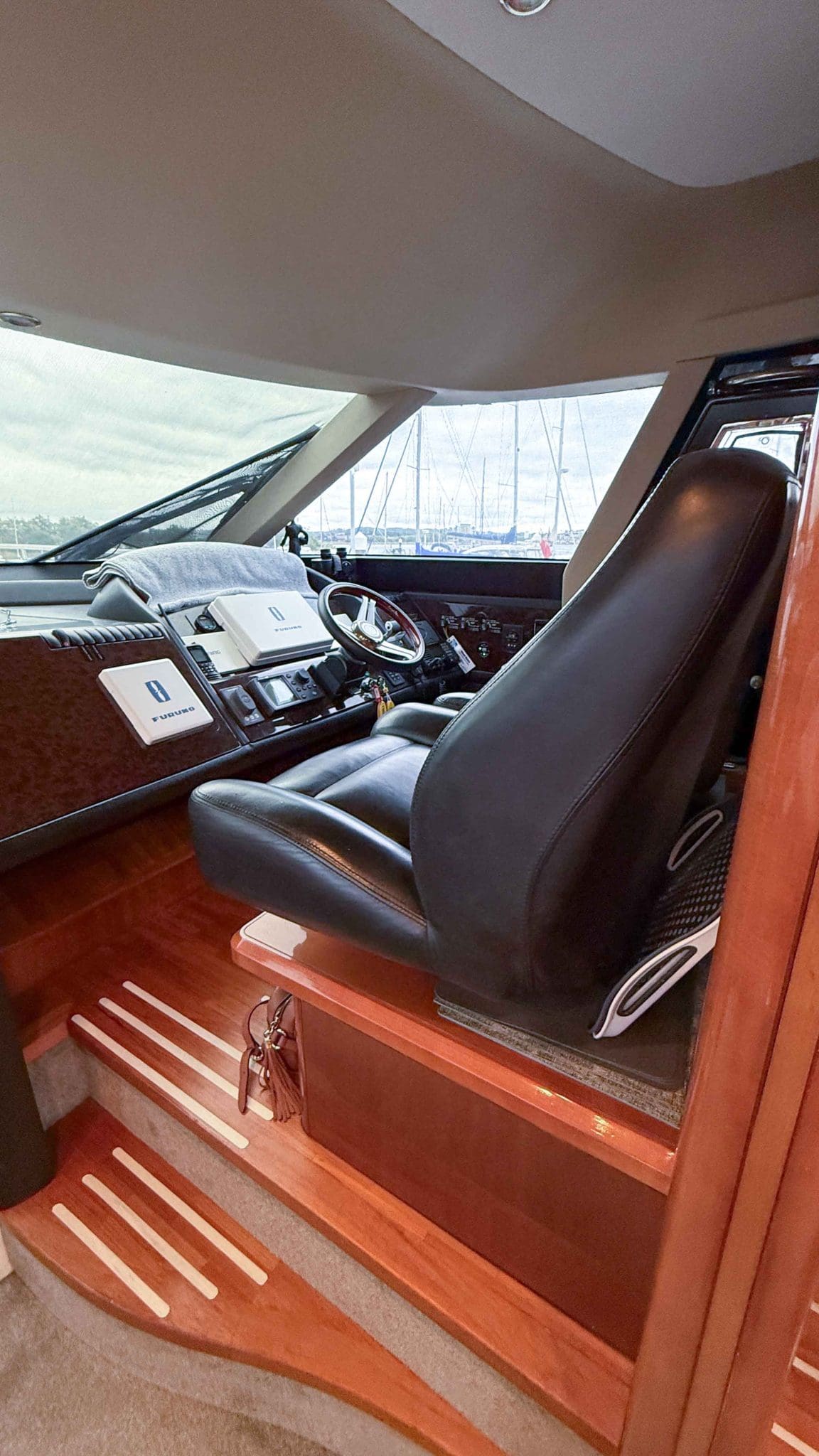 A comprehensive program of recent upgrades and refurbishments means she is presented in outstanding condition, both cosmetically and mechanically. She comes fully equipped with Side-Power bow and stern thrusters, a Yacht Controller for effortless handling, Furuno navigation equipment, Lenco trim tabs, and a host of luxury features including a flybridge wet bar with grill, and full teak decks replaced in 2021.