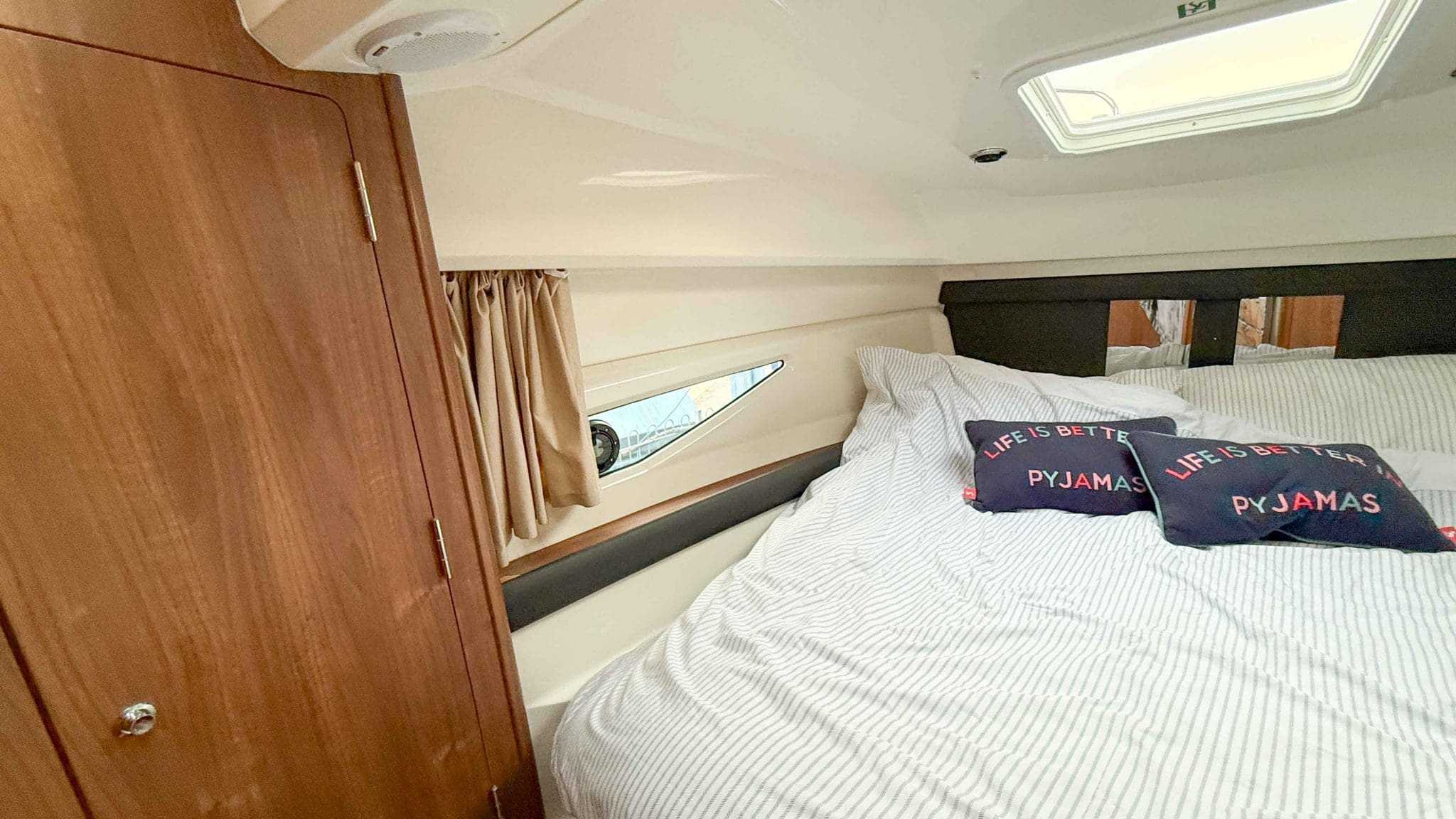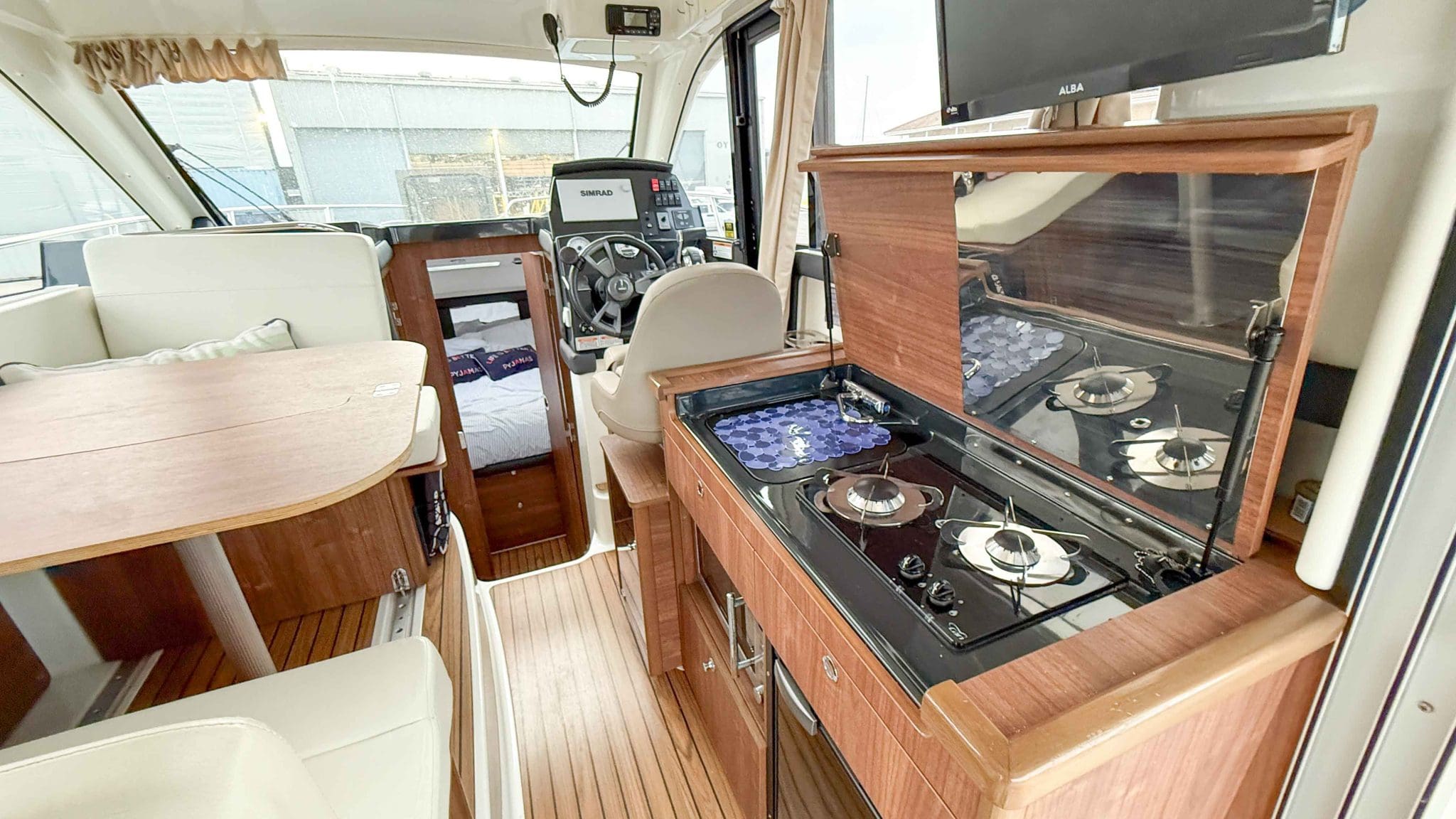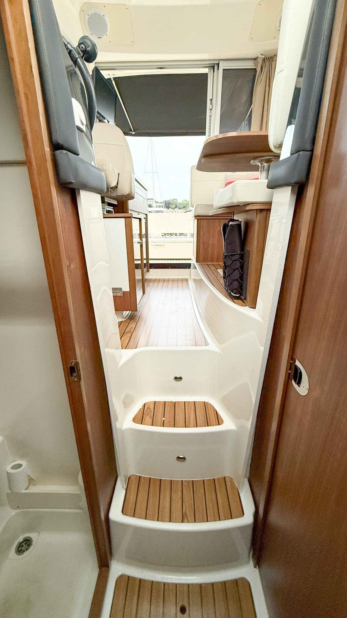 Handling is made effortless thanks to the bow thruster, giving you complete confidence when docking or maneuvering in tight marinas.